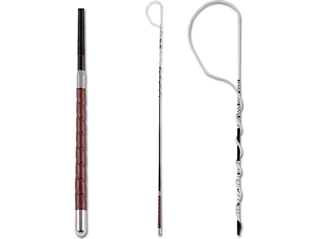 Klasyczny czarny bat z brązową skórzaną rączką i srebrnymi okuciami. Długość liny wynosi około 100 cm. Ze względu na duży rozmiar bat nie może być wysłany pocztą.