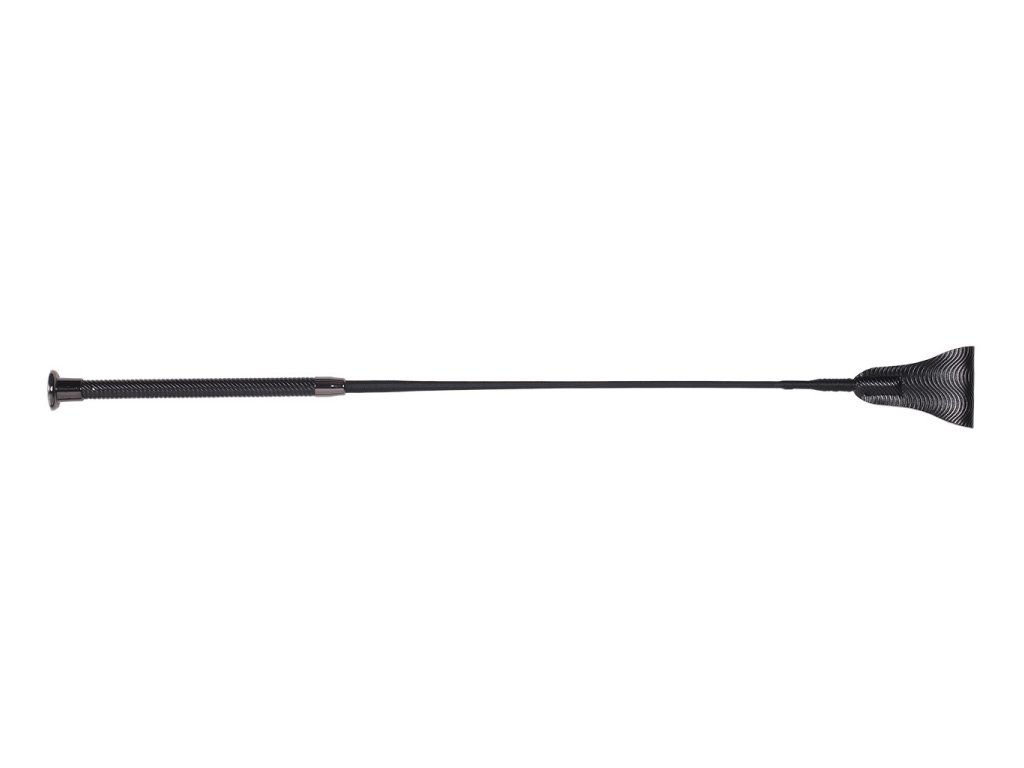 Elegancki bat do skoków z rękojeścią w kształcie spirali. Rękojeść wykonana jest z imitacji skóry. Bat jest wyposażony w metalową końcówkę, która zapewnia wygodny chwyt. Bat ma 65 cm długości i jest dostępny w kilku wariantach kolorystycznych. Ze względu na duży rozmiar bat nie może być wysłany pocztą.