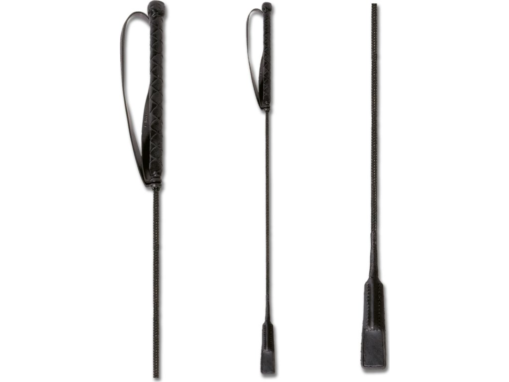 Bat skokowy z gumową rączką, pętlą na nadgarstek i wąską skórzaną klapką. Ze względu na duży rozmiar bat nie może być wysłany pocztą.
