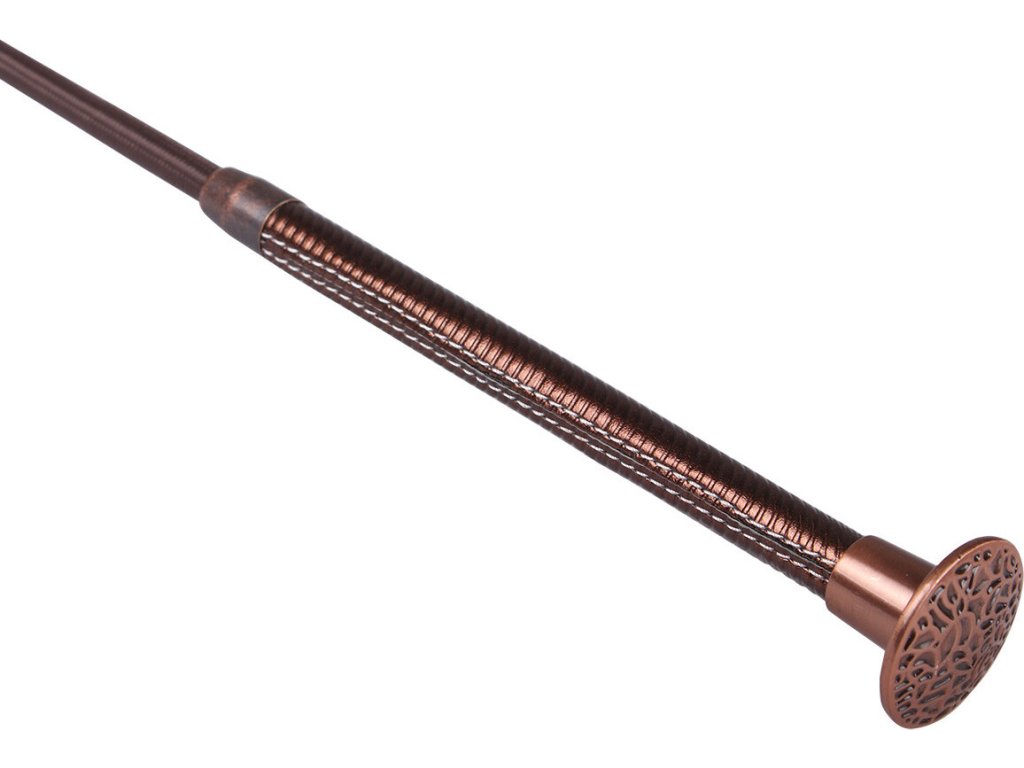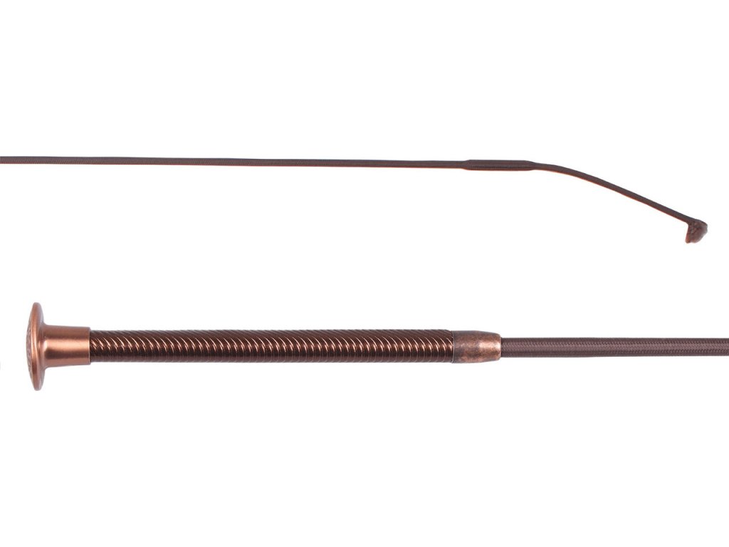 Elegancki bat do dresażu ozdobiony spiralnym uchwytem. Uchwyt wykonany jest z imitacji skóry. Bat jest wyposażony w metalową końcówkę, która zapewnia wygodny chwyt. Dostępny jest w wielu długościach i wariantach kolorystycznych. Ze względu na duży rozmiar bat nie może być wysłany pocztą.