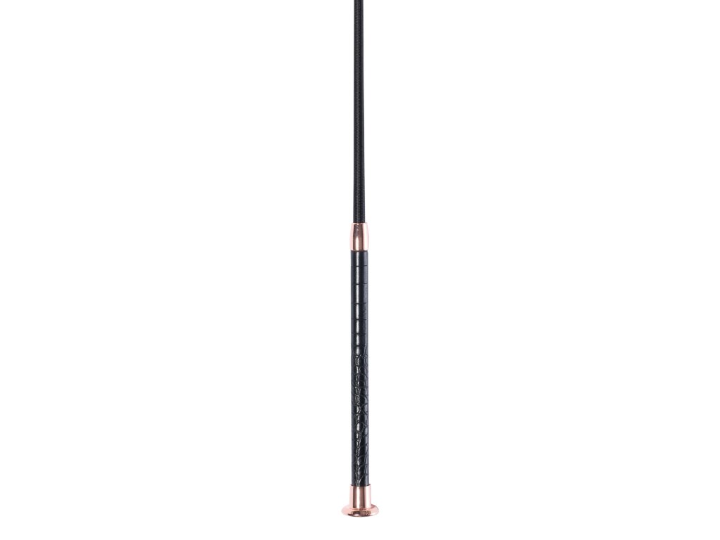 Bat do dresażu o luksusowym wyglądzie dzięki rączce z imitacji skóry krokodyla i detalom w kolorze różowego złota. Zaprojektowany w pięknym, eleganckim stylu. Dostępny w czterech wariantach kolorystycznych. Ze względu na duży rozmiar bat nie może być wysłany pocztą. Dostępny w rozmiarach 100, 110 i 120 cm.