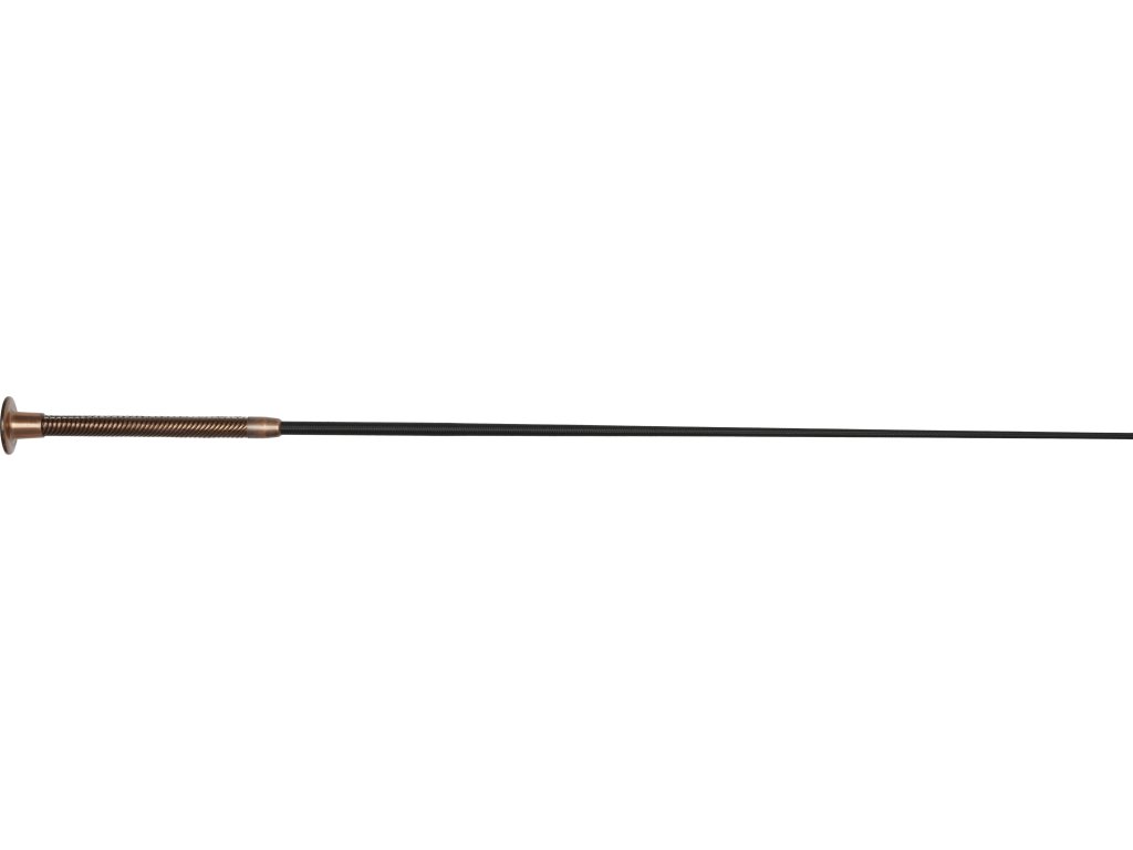 Elegancki bat ze spiralną rączką. Rękojeść i końcówka bata są wykonane z metalu. Bardzo dobrze wyważony. Dostępny w rozmiarach 100; 110 i 120 cm. Ze względu na duży rozmiar bat nie może być wysłany pocztą.