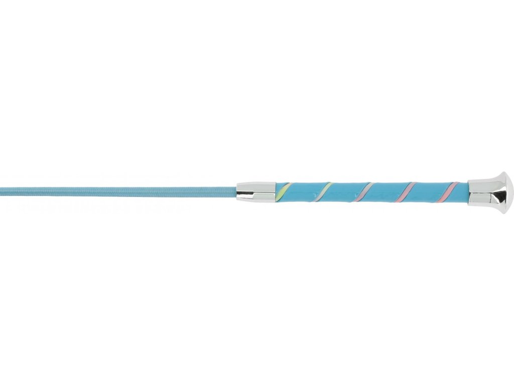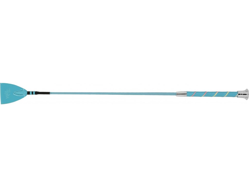 Bat do skoków jest lekki, stylowy i praktyczny, przyciągający wzrok swoim designem w jaskrawych kolorach. Rdzeń wykonany jest z włókna szklanego, pokrytego wytrzymałym nylonem, co zapewnia niską wagę, elastyczność i długą żywotność. Kolorowa rękojeść ma ergonomiczny kształt, dobrze leży w dłoni i nie ślizga się. Na końcu bata znajduje się praktyczna półokrągła klapka, która umożliwia delikatne, ale skuteczne sygnały bez zbędnego podrażniania konia. Ze względu na duże wymiary, bat nie może być wysłany za pośrednictwem Packeta delivery.