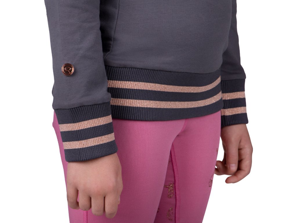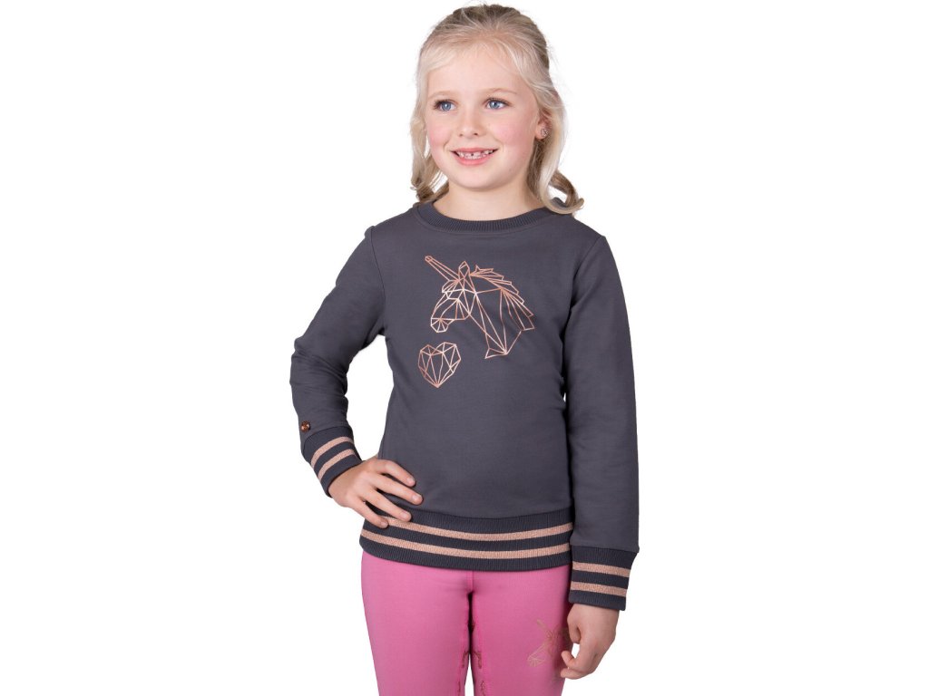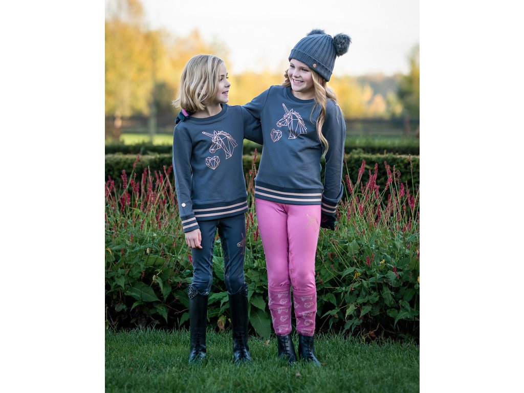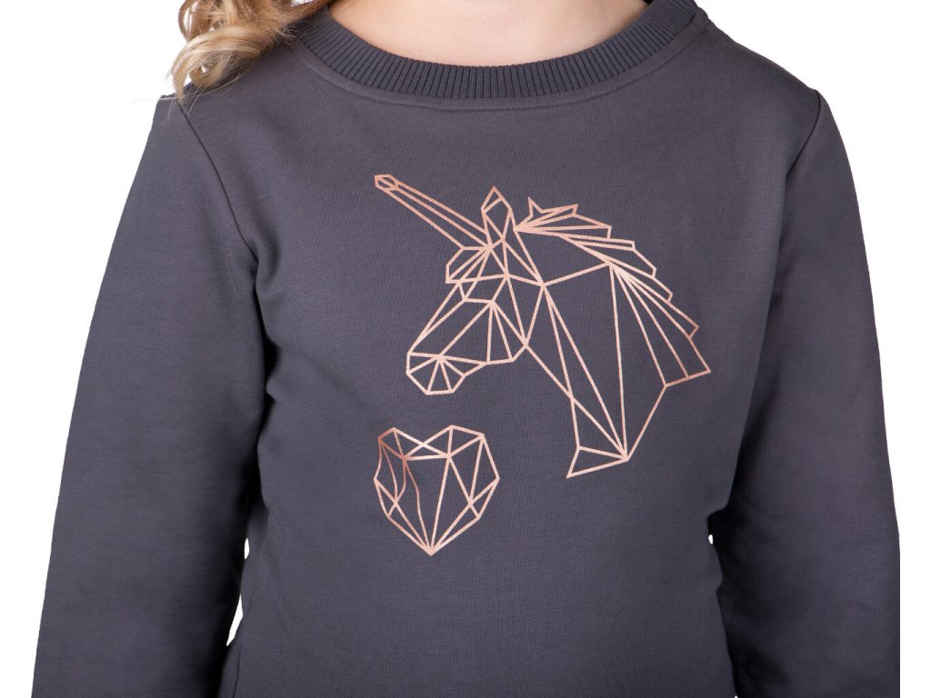 Wysokiej jakości bluza dziecięca wykonana z bardzo elastycznego materiału. Materiał ten, wraz z elastycznym pasem i rękawami, zapewnia maksymalny komfort. Bluza jest ozdobiona złotymi paskami na obszyciach i nadrukiem jednorożca, co dodaje uroczego wyglądu. Rękawiczki idealnie pasują do innych produktów z kolekcji Didy. Część kolekcji jesień/zima 2023/2024.
