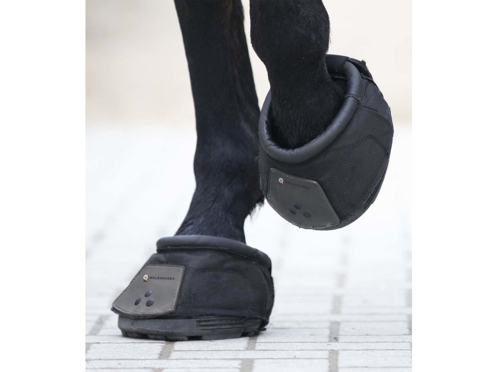 But ochronny na kopyto zapewniający ochronę przed uderzeniami podczas jazdy. Idealny dla koni o wrażliwych kopytach. But otwiera się na pięcie, co ułatwia i przyspiesza dopasowanie. Boczne części można łatwo złożyć, założyć na kopyto, a następnie zamknąć. Bardzo łatwy do zamocowania za pomocą dwustronnego rzepu, który doskonale się trzyma. But jest wyposażony w miękką wyściółkę na krawędzi, aby zapobiec otarciom. Z przodu znajduje się gumowe logo Waldhausen, które chroni but przed zużyciem i uderzeniami. Cena dotyczy jednej sztuki.