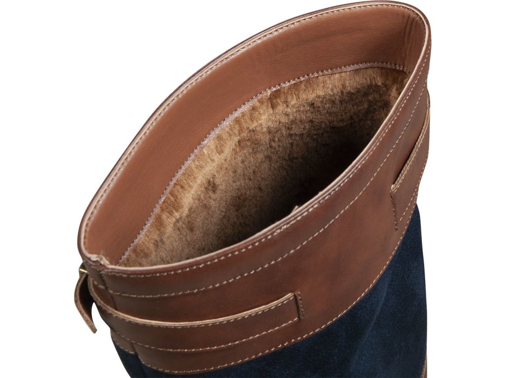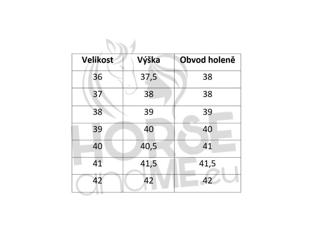 Długie damskie buty zimowe wykonane ze skóry syntetycznej, która jest łatwa w utrzymaniu. Wewnętrzna część ocieplona sztuczną skórą jagnięcą. Podeszwa wykonana jest z antypoślizgowych gumek, które zapobiegają ślizganiu się. Odpowiednie do stajni i do miasta jako modne buty. Nie są wodoodporne. Dostępne w rozmiarach 36–42.