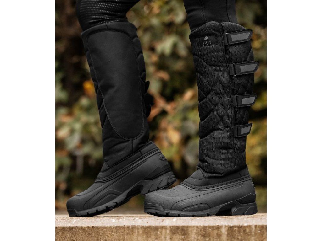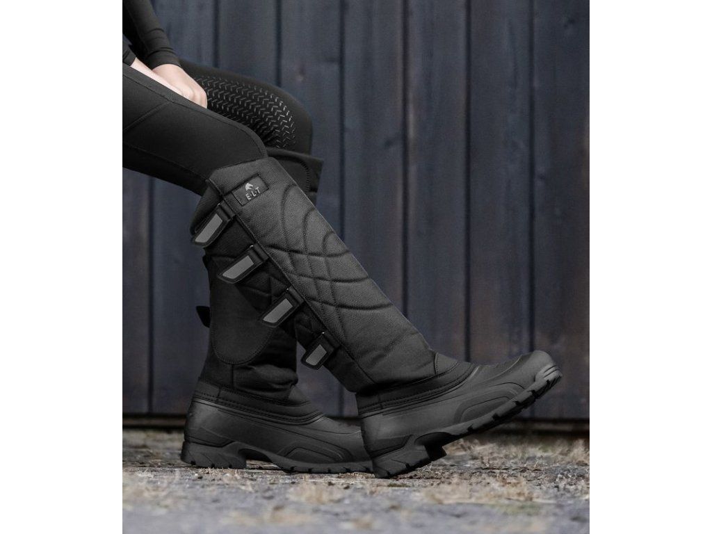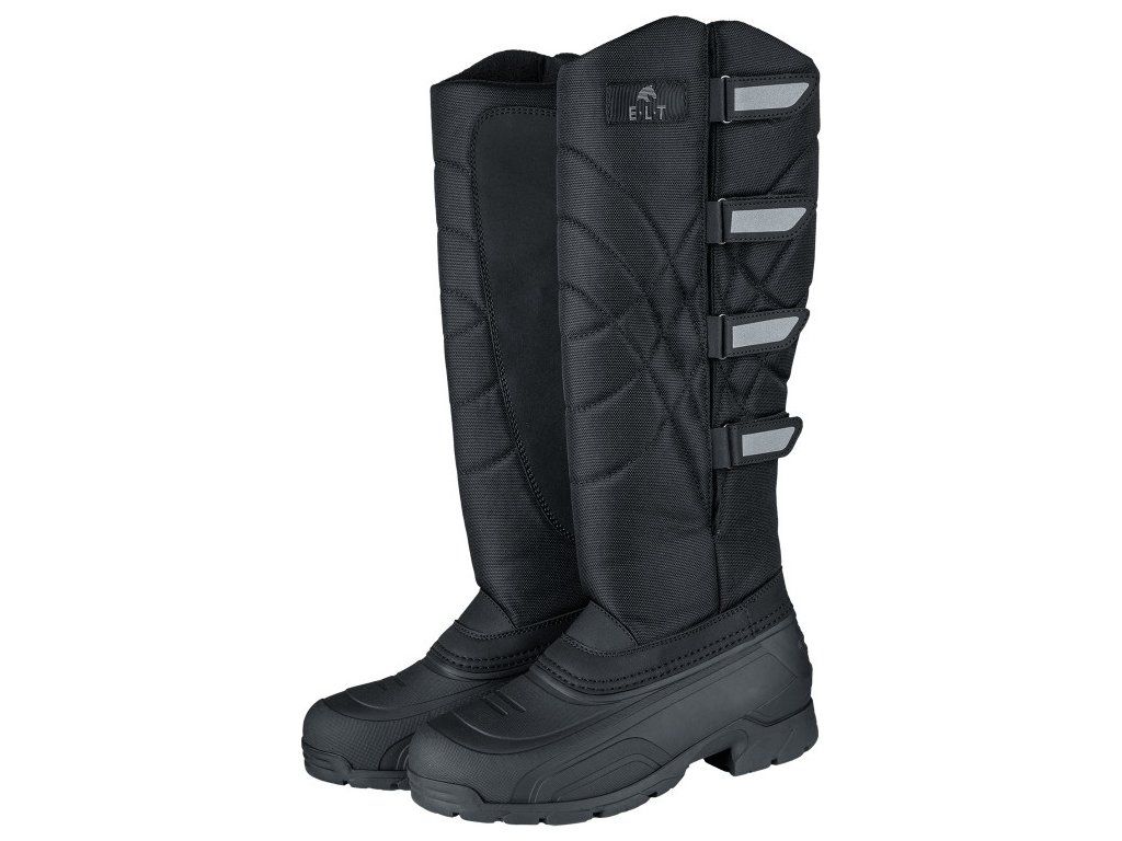 Jeździeckie buty termiczne z antypoślizgową podeszwą i wodoodporną gumową częścią. Posiadają regulowaną szerokość łydki dzięki czterem paskom na rzepy. Wyposażone w elementy odblaskowe na zamkach błyskawicznych dla lepszej widoczności i większego bezpieczeństwa. Wyposażone w wyściełaną, wyjmowaną wkładkę i antypoślizgową podeszwę. Są odporne na warunki atmosferyczne. Ozdobione logo ELT.