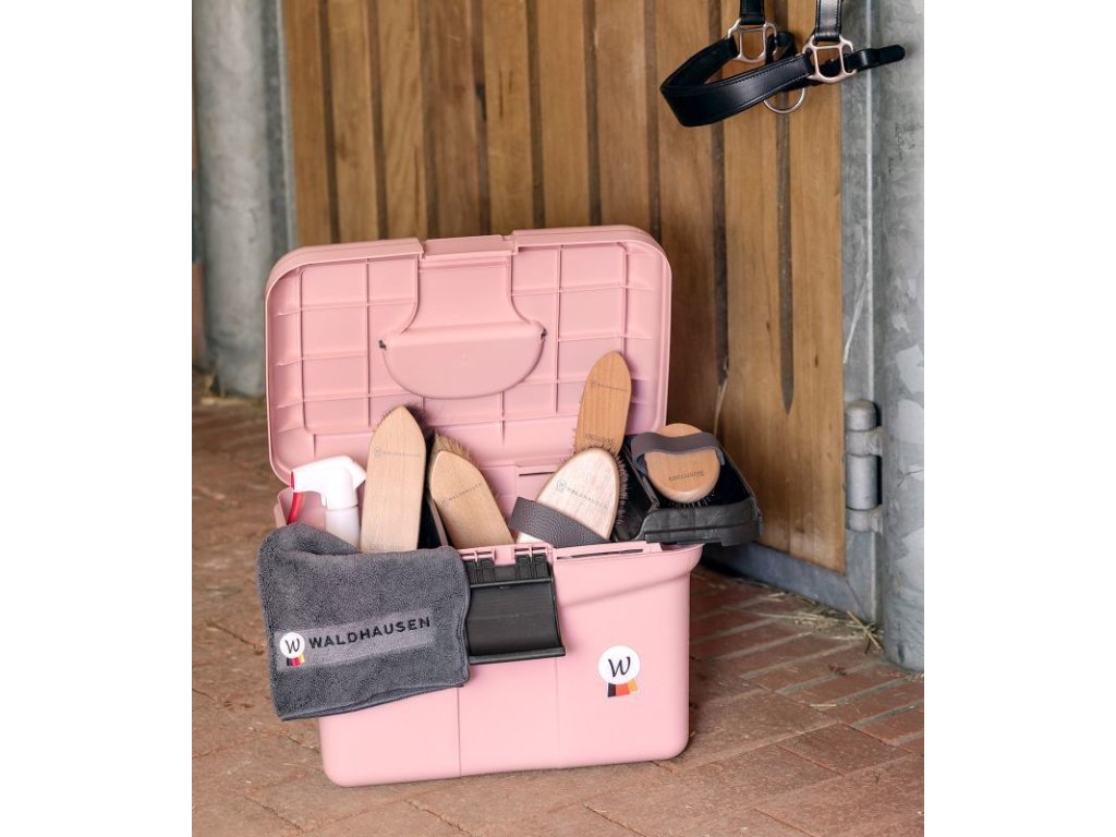 Przestronny, pusty pojemnik do pielęgnacji wykonany z wysokiej jakości tworzywa sztucznego pochodzącego z recyklingu. Posiada składany uchwyt, klapkę zamykającą, wewnętrzną wyjmowaną przegrodę - dwie pozycje do umieszczenia, wyjmowany schowek na drobne przedmioty, w zestawie naklejki z literami. Idealny towarzysz na zawody i do stajni. Ostrzeżenie: Nie próbuj stawać ani siadać na kufrze, ponieważ może to spowodować uszkodzenia.