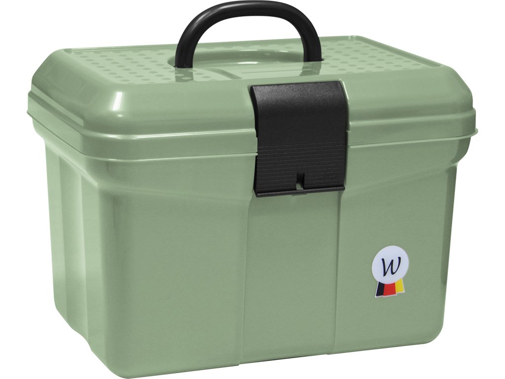 Przestronny, pusty pojemnik do pielęgnacji wykonany z wysokiej jakości tworzywa sztucznego pochodzącego z recyklingu. Posiada składany uchwyt, klapkę do zamykania, wewnętrzną wyjmowaną przegrodę z dwoma pozycjami, wyjmowany schowek na drobne przedmioty, w zestawie naklejki z literami. Idealny towarzysz na zawody i do stajni. Ostrzeżenie: Nie próbuj stawać ani siadać na kufrze, ponieważ może to spowodować uszkodzenia.