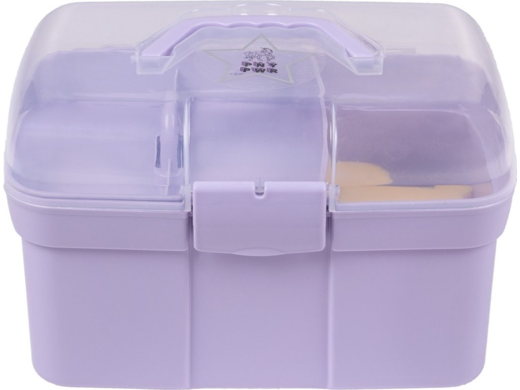 Praktyczny kufer na szczotki dla dzieci z uchwytem dla wygodnego przenoszenia. Kufer jest wyposażony w podstawowy sprzęt do czyszczenia i pielęgnacji koni. Wewnątrz kuferka znajduje się wyjmowana przegródka na drobne przedmioty, takie jak gumki do włosów lub smakołyki. Zawartość: zgrzebło do masażu, zgrzebło plastikowe, miękka szczotka, grzebień do grzywy, grzebień do zaplatania grzywy, kopystka i gąbka. Kufer dostępny jest w wielu wariantach kolorystycznych. Wymiary: 29x19x20 (dł./szer./wys.).