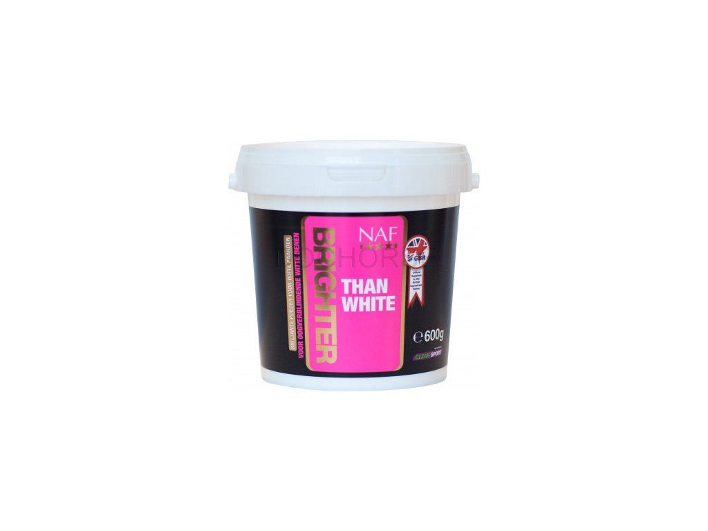 Brighter than white to puder zapewniający idealną białą sierść. Można go również stosować miejscowo, tylko na białe obszary sierści konia. Może być stosowany jako klasyczny puder lub mieszany z wodą w celu uzyskania pasty. Nadaje się do stosowania na okolice kopyt lub inne intensywnie narażone obszary. Można go również nakładać pod owijki, w żaden sposób ich nie uszkodzi.