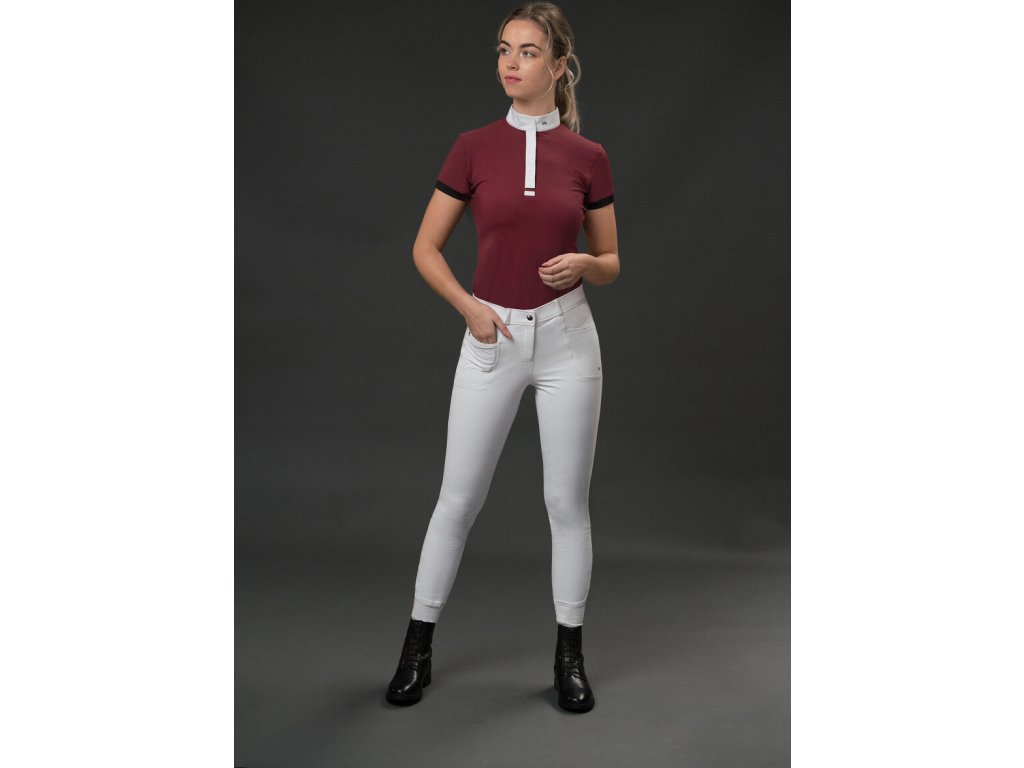 Innowacyjne bryczesy AmbitionFirst zaprojektowane dla jeźdźców o wysokich wymaganiach dotyczących komfortu, funkcjonalności, kroju i designu. Wykonane są z rozciągliwego materiału, który zapewnia maksymalne dopasowanie i komfort. Wyposażone w silikonowe wykończenie, szlufki, lycrę na nogawkach i dwie kieszenie. Dostępne również w kolorze czarnym.