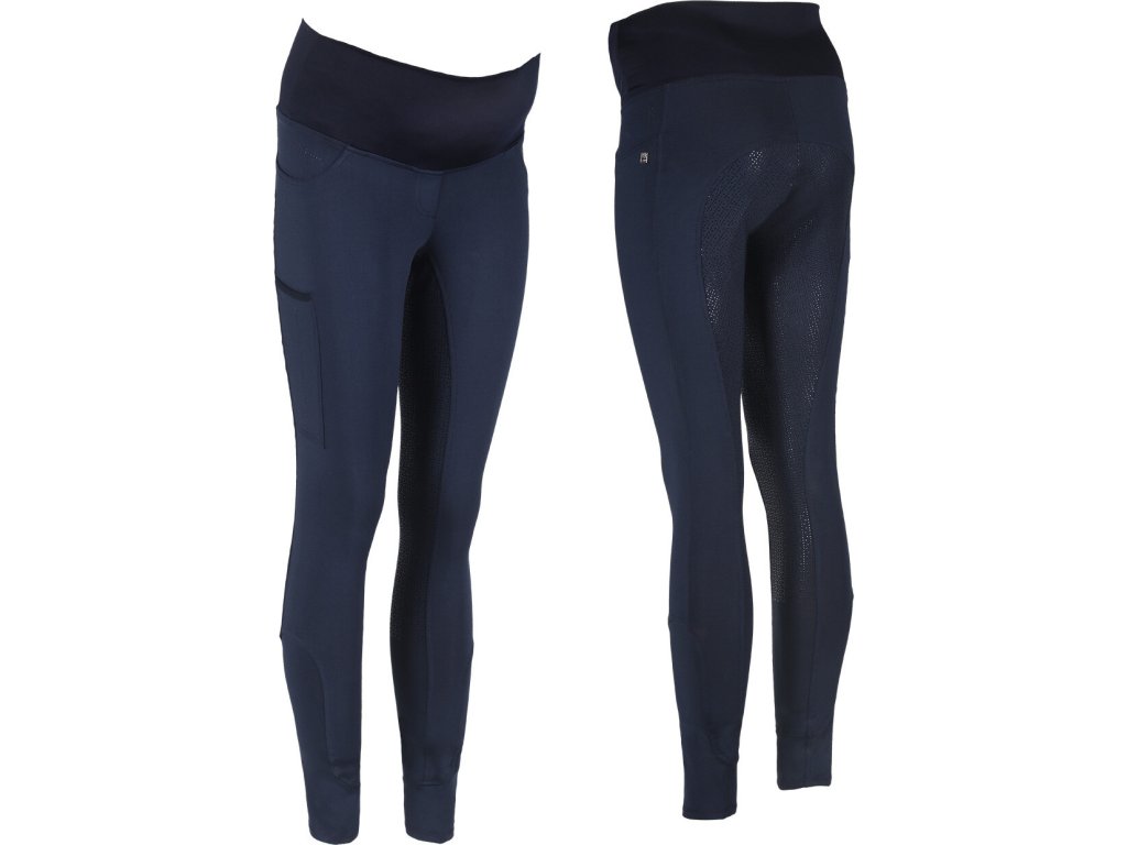 Wysokiej jakości legginsy do jazdy konnej specjalnie zaprojektowane dla kobiet w ciąży. Wykonane są z miękkiego i elastycznego materiału, który jest bardzo adaptowalny. Posiadają bardzo szeroki i elastyczny pas dla maksymalnego komfortu. Wyposażone w kropkowany antypoślizgowy silikonowy lej i praktyczną kieszeń na telefon na lewym udzie. Ozdobione subtelnym, błyszczącym nadrukiem 'Equestrian Sports' na prawym udzie i imitacją kieszeni z przodu.