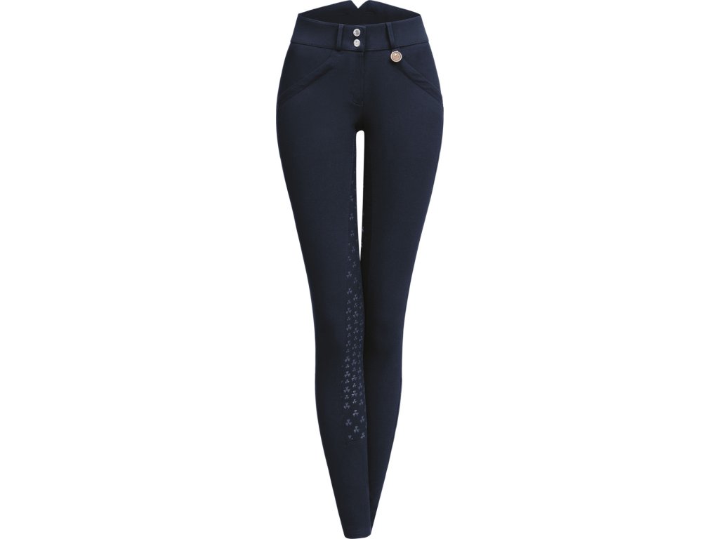 Bryczesy damskie, które dzięki specjalnemu krojowi tworzą efekt push-up. Wykonane są z bi-elastycznego i oddychającego materiału. Posiadają antypoślizgowy silikonowy lej i wyjątkowo wysoki stan. Wyposażone w dwie praktyczne kieszenie na zamek i sportową elastyczną podszewkę z siatki. Dostępny w wielu opcjach kolorystycznych.