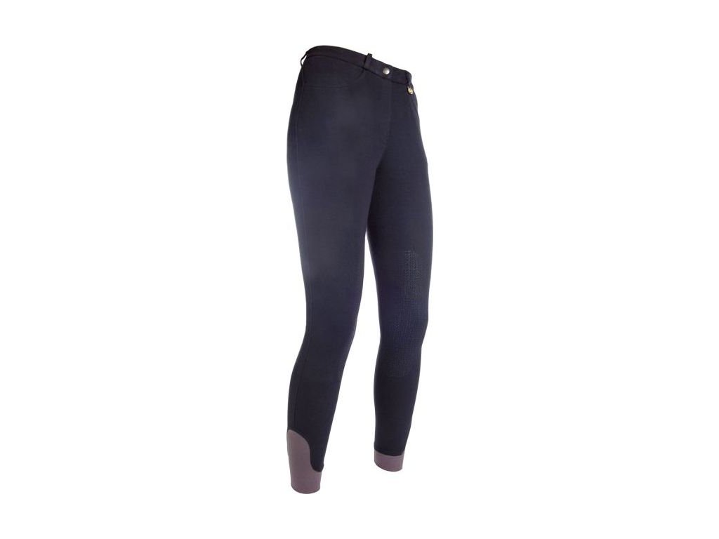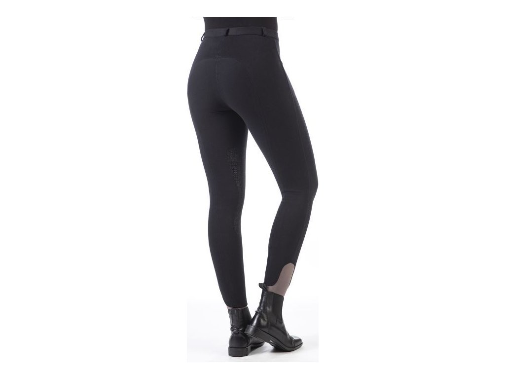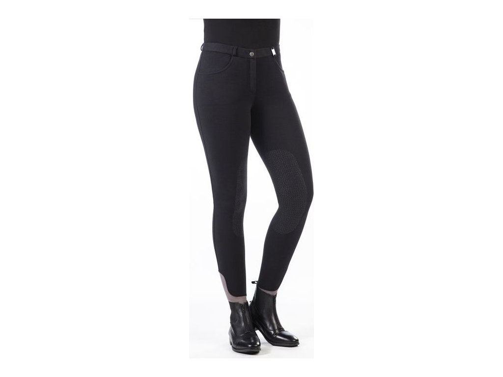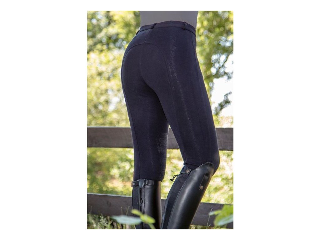 Wygodne bryczesy jeździeckie wyposażone w silikonowy lej na kolanach. Bryczesy są wyposażone w elastyczne zakończenie nogawek, co ułatwia ich zakładanie i zdejmowanie. Posiadają 2 przednie kieszenie i szlufki na pasek. Można prać w pralce w temperaturze 30°C i suszyć w suszarce bębnowej z użyciem zimnego powietrza.Dziecięce rozmiary do rozmiaru 158 są wyposażone w regulowany pas.