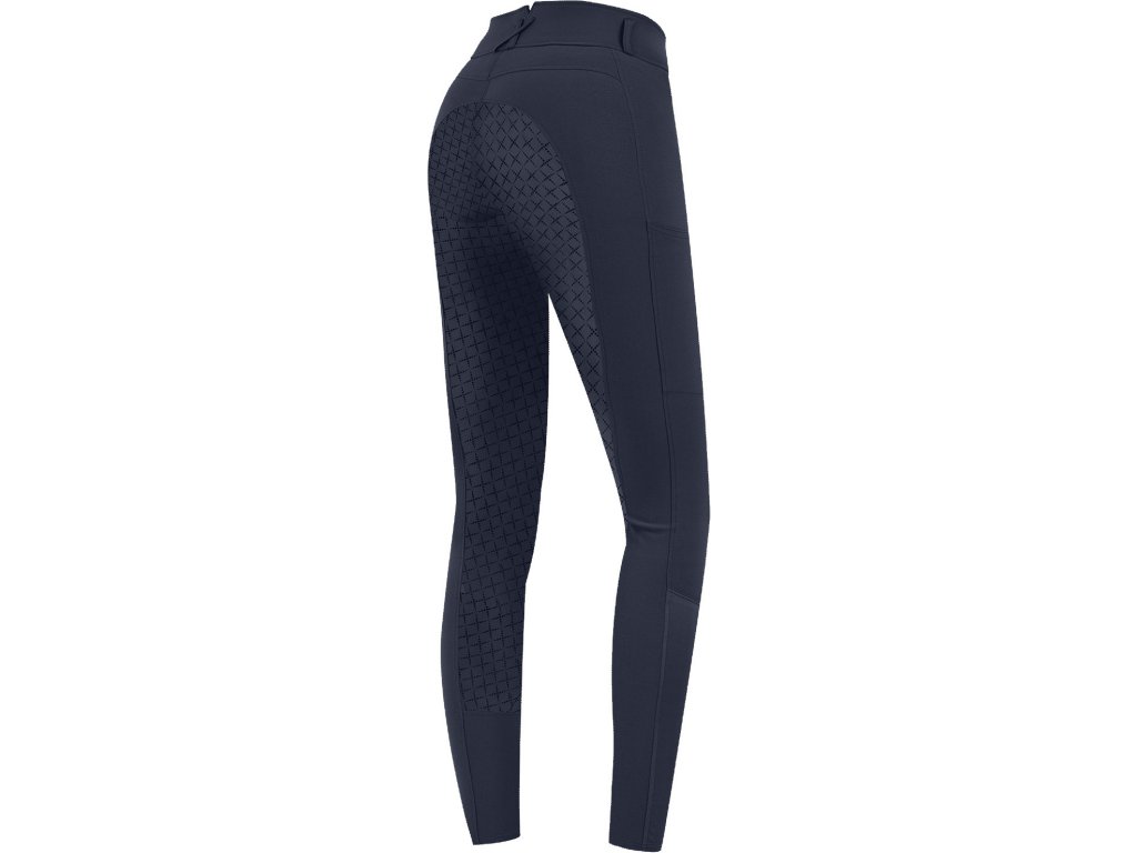 Wytrzymałe, elastyczne, oddychające i wygodne bryczesy wykonane z bi-elastycznej i oddychającej mikrofibry. Z silikonowym antypoślizgowym lejem na całej długości siedziska. Bardzo łatwe w utrzymaniu. Praktyczna przednia kieszeń z zamkiem błyskawicznym, nogawki wykończone lycrą, co ułatwia zakładanie. Bryczesy posiadają szlufki na pasek i kieszeń z boku uda odpowiednią na telefon. Rozmiary damskie i młodzieżowe.