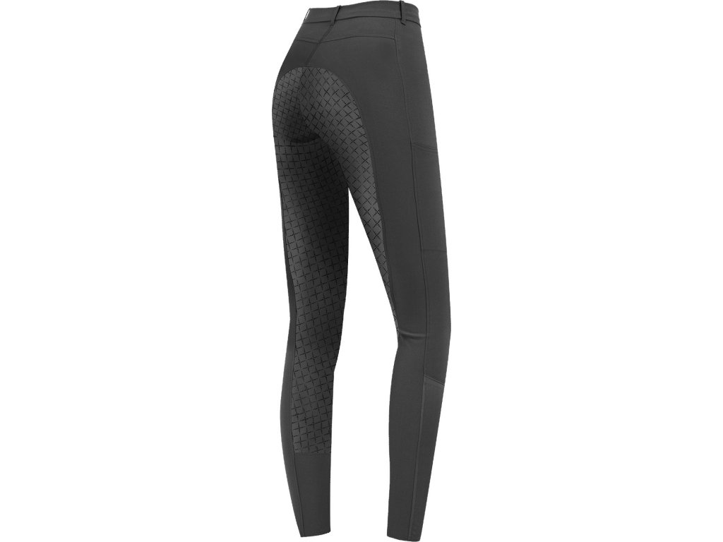 Bryczesy z antypoślizgowym silikonowym lejem na całej długości siedziska. Wykonane z bi-elastycznej i oddychającej mikrofibry. Posiadają elastyczny panel na dole nogawki ułatwiający zakładanie, jedną przednią kieszeń na zamek, i kieszeń na telefon komórkowy na prawej nogawce. Wyposażone w szlufki na pasek.
