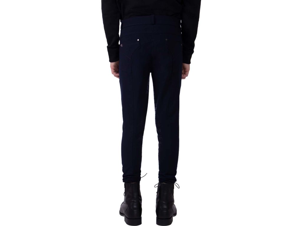 Bryczesy do jazdy konnej dla chłopców, z silikonowym, antypoślizgowym wykończeniem na kolanach dla lepszej przyczepności. Nadaje się do noszenia przez cały rok. Wykonane są z wysoce oddychającego materiału, który jest również niezwykle wygodny. Posiadają dwie kieszenie z przodu, dwie kieszenie z tyłu oraz lycrę na nogawkach.