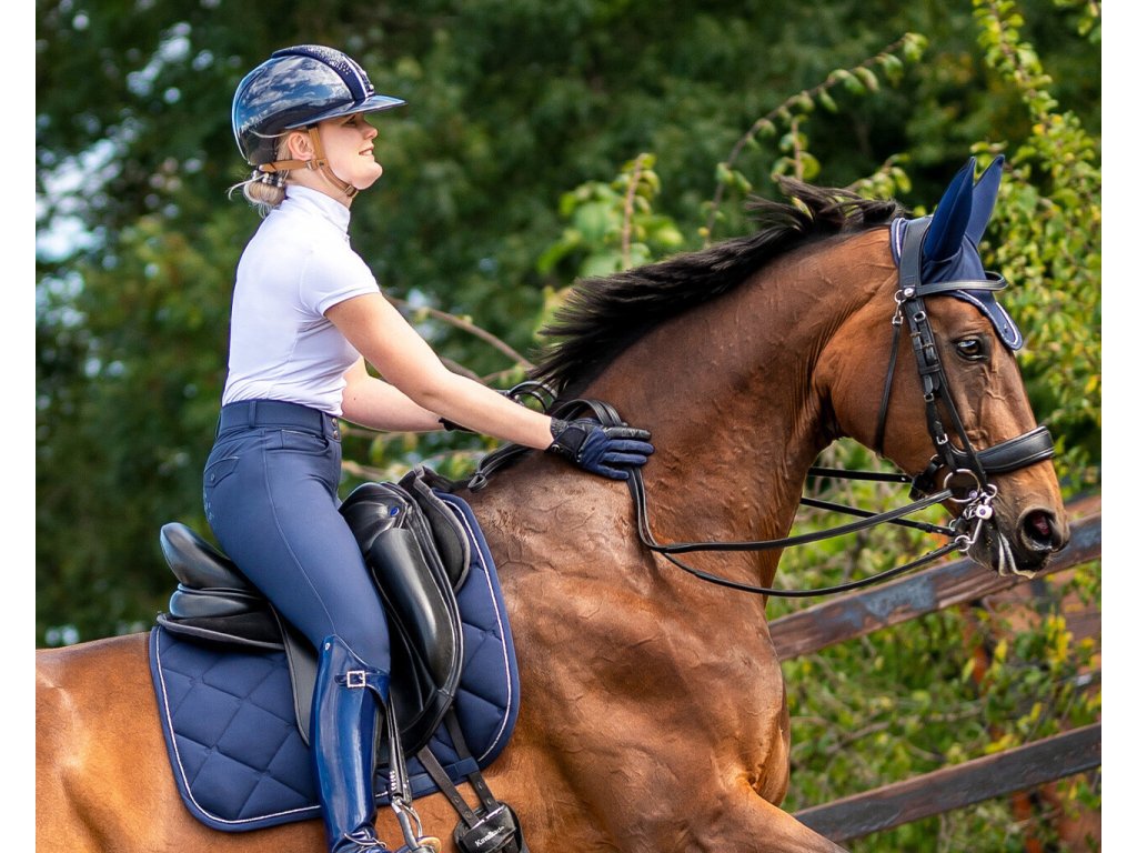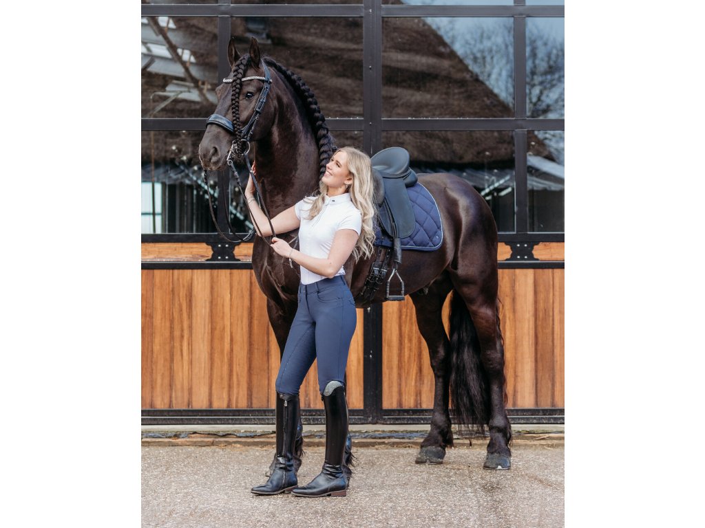 Innowacyjne bryczesy PerformNew PresTeq. Zaprojektowane, aby zapewnić maksymalny komfort, wsparcie, i przyczynić się do optymalnej wydajności jeźdźca. Materiał jest miękki, wysoce rozciągliwy i oddychający. Posiadają antypoślizgowy silikonowy lej i nogawki wykończone oddychającą siatką. Bryczesy są dostępne w kolorze niebieskim i białym.