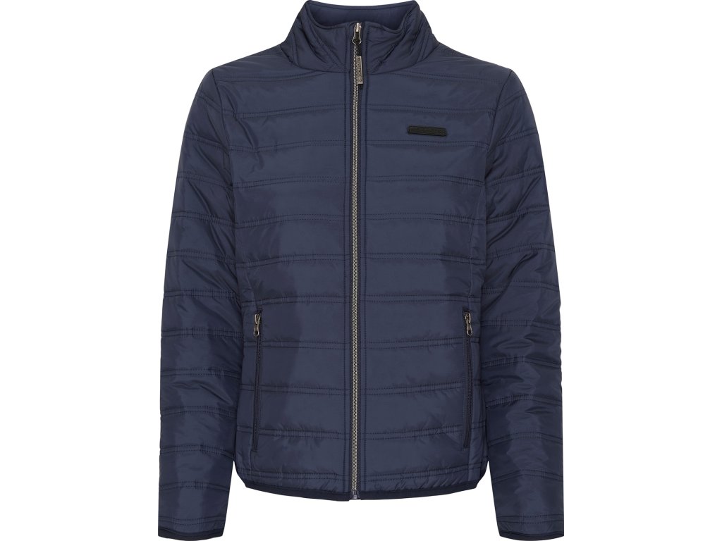 Przeszywana, lekka kurtka ze stójką na okres przejściowy. Zamki w kolorze antycznego srebra i ładny pasek z logo po lewej stronie klatki piersiowej. Przednie kieszenie zapinane na zamek. Podwójne poziome pikowane szwy. Tkanina to poliester 300D. Dostępna w wielu rozmiarach.