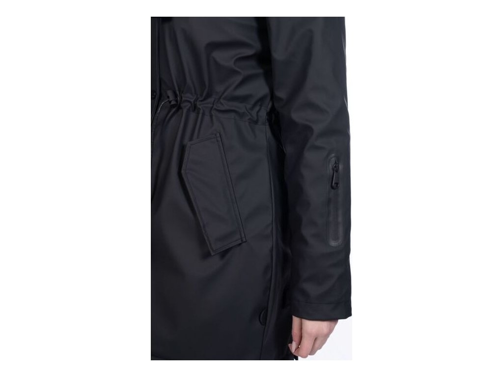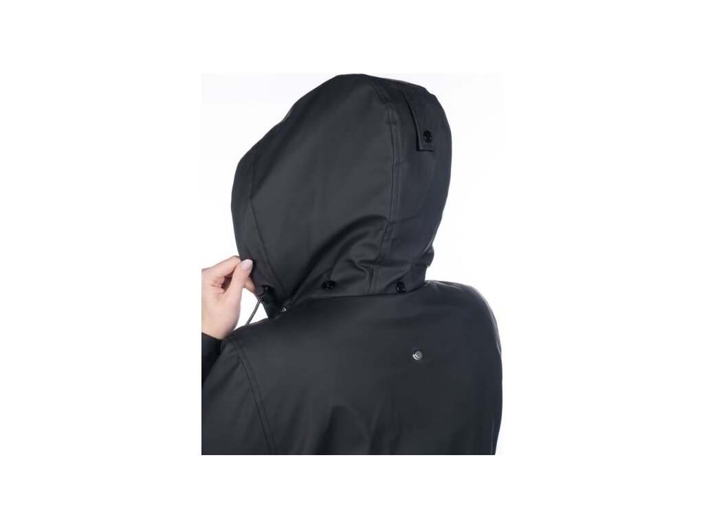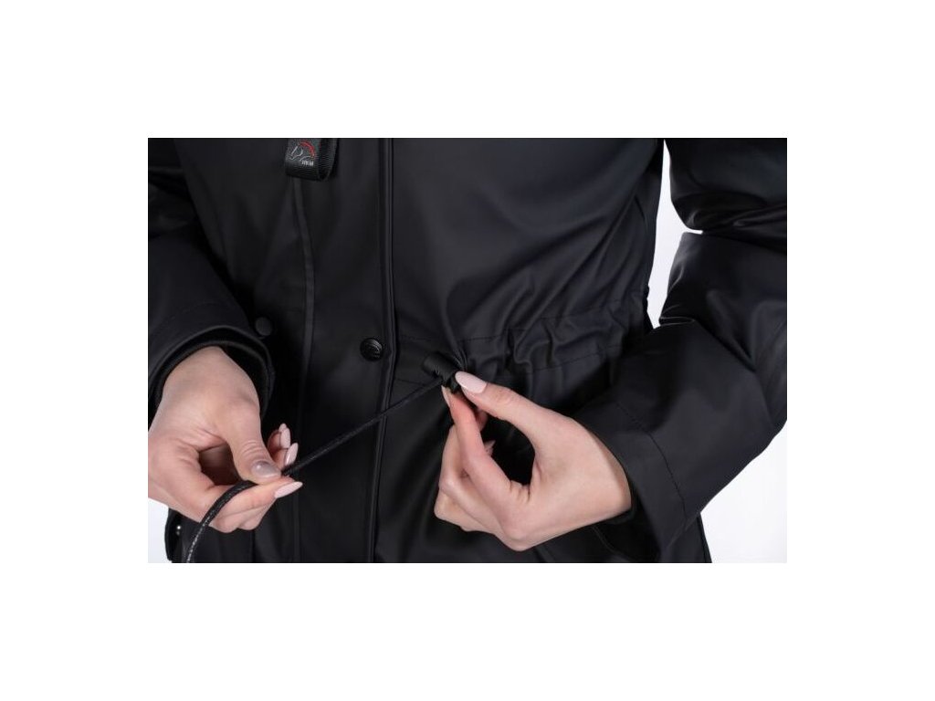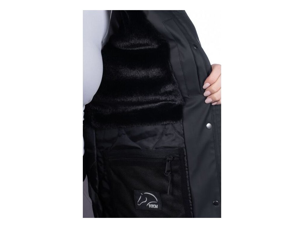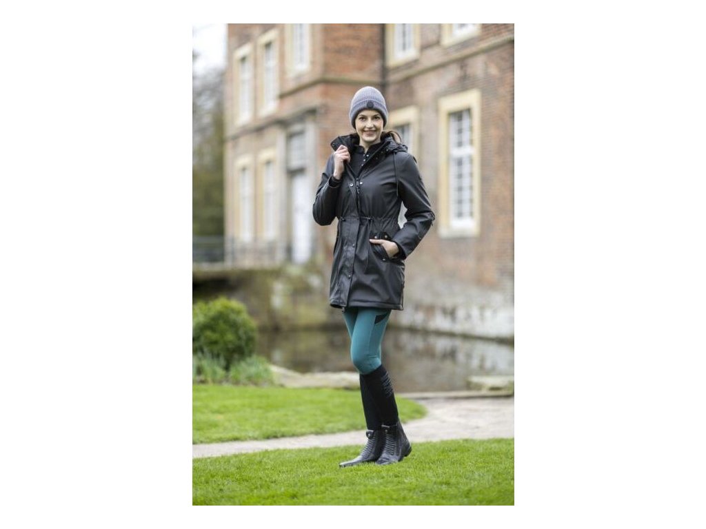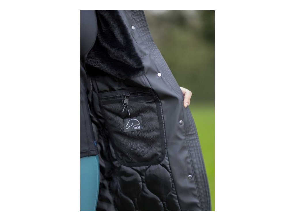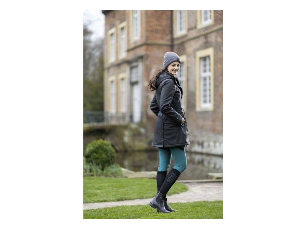 Wodoodporna kurtka jeździecka z lekkim wypełnieniem i dwukierunkowym zamkiem błyskawicznym z plisą na guziki. W bocznych kieszeniach znajduje się ciepła podszewka z polaru. Wewnątrz kurtki znajduje się również jedna kieszeń zapinana na zamek, która szczególnie nadaje się do przechowywania telefonu. Kurtka jest regulowana w talii, dzięki czemu idealnie dopasowuje się do kobiecych kształtów. Kurtka ma również odpinany kaptur z zatrzaskami i tylne rozcięcia jeździeckie z odblaskowym nadrukiem. Podszewka wewnątrz kurtki jest częściowo wykonana z sztucznego futra i ma przyjemny polar wokół szyi. Dostępne w wielu kolorach i rozmiarach.