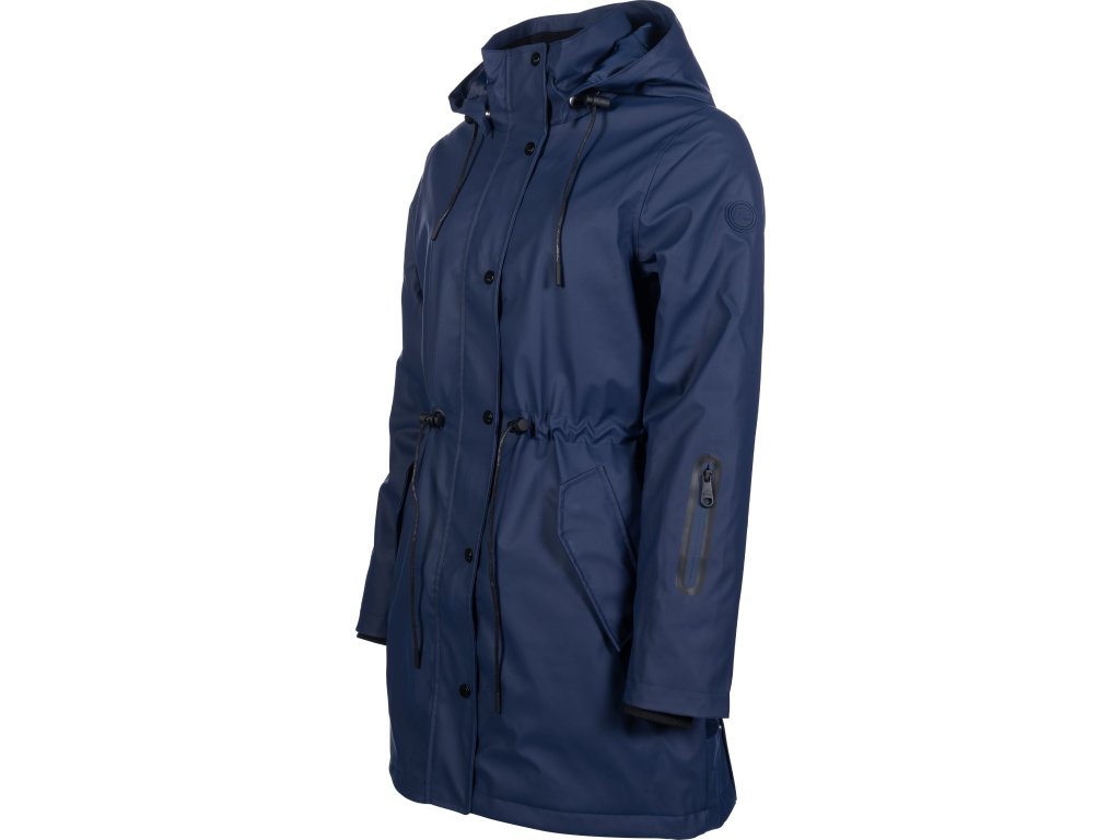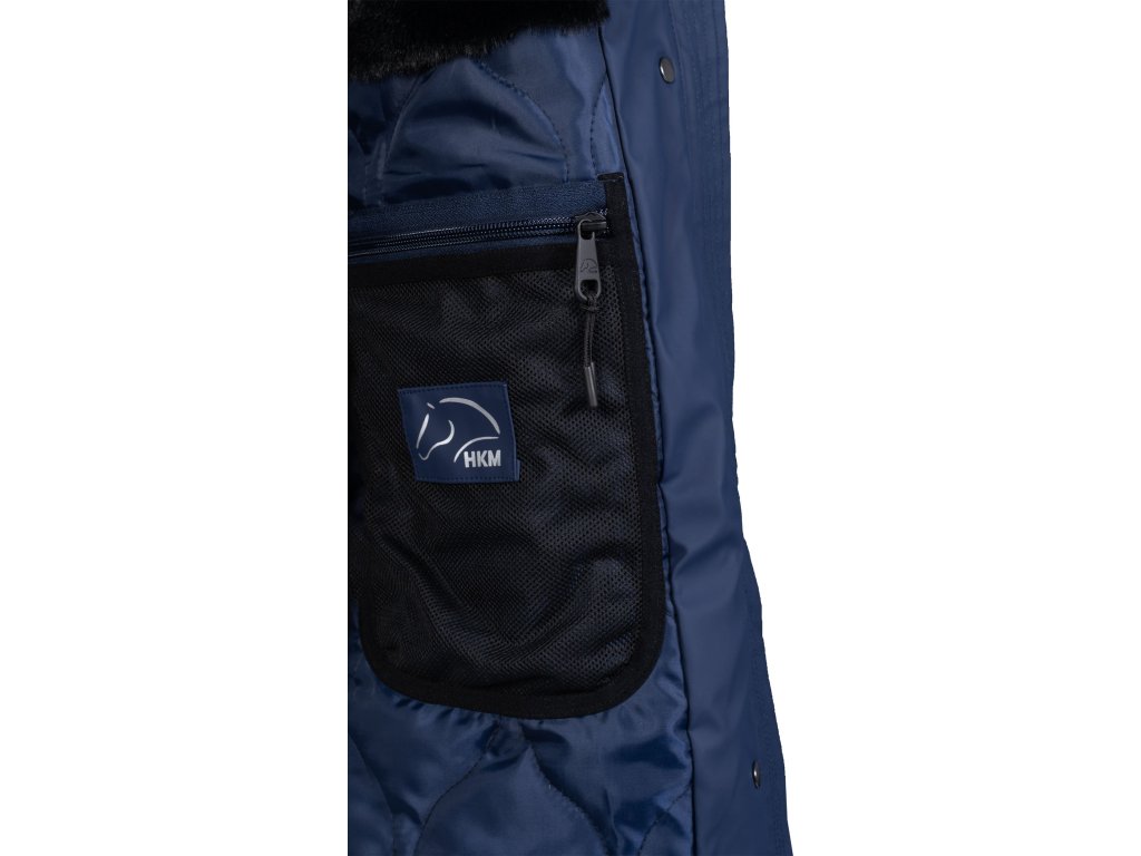 Wodoodporna kurtka jeździecka z lekkim wypełnieniem i dwukierunkowym zamkiem błyskawicznym. W bocznych kieszeniach znajduje się ciepła podszewka z polaru. Wewnątrz kurtki znajduje się również jedna kieszeń zapinana na zamek, która szczególnie nadaje się do przechowywania telefonu. Kurtka jest regulowana w talii, dzięki czemu idealnie dopasowuje się do kobiecych kształtów. Podszewka ze sztucznego futra wewnątrz kurtki.