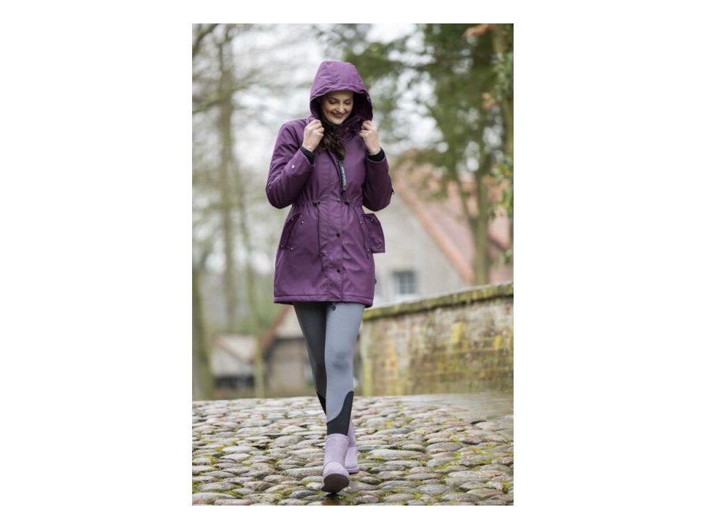 Wodoodporna kurtka jeździecka z lekkim wypełnieniem i dwukierunkowym zamkiem błyskawicznym z plisą na guziki. W bocznych kieszeniach znajduje się ciepła podszewka z polaru. Wewnątrz kurtki znajduje się również jedna kieszeń zapinana na zamek, która szczególnie nadaje się do przechowywania telefonu. Kurtka jest regulowana w talii, dzięki czemu idealnie dopasowuje się do kobiecych kształtów. Kurtka ma również odpinany kaptur z zatrzaskami i tylne rozcięcia jeździeckie z odblaskowym nadrukiem. Podszewka wewnątrz kurtki jest częściowo wykonana z sztucznego futra i ma przyjemny polar wokół szyi. Dostępne w wielu kolorach i rozmiarach.