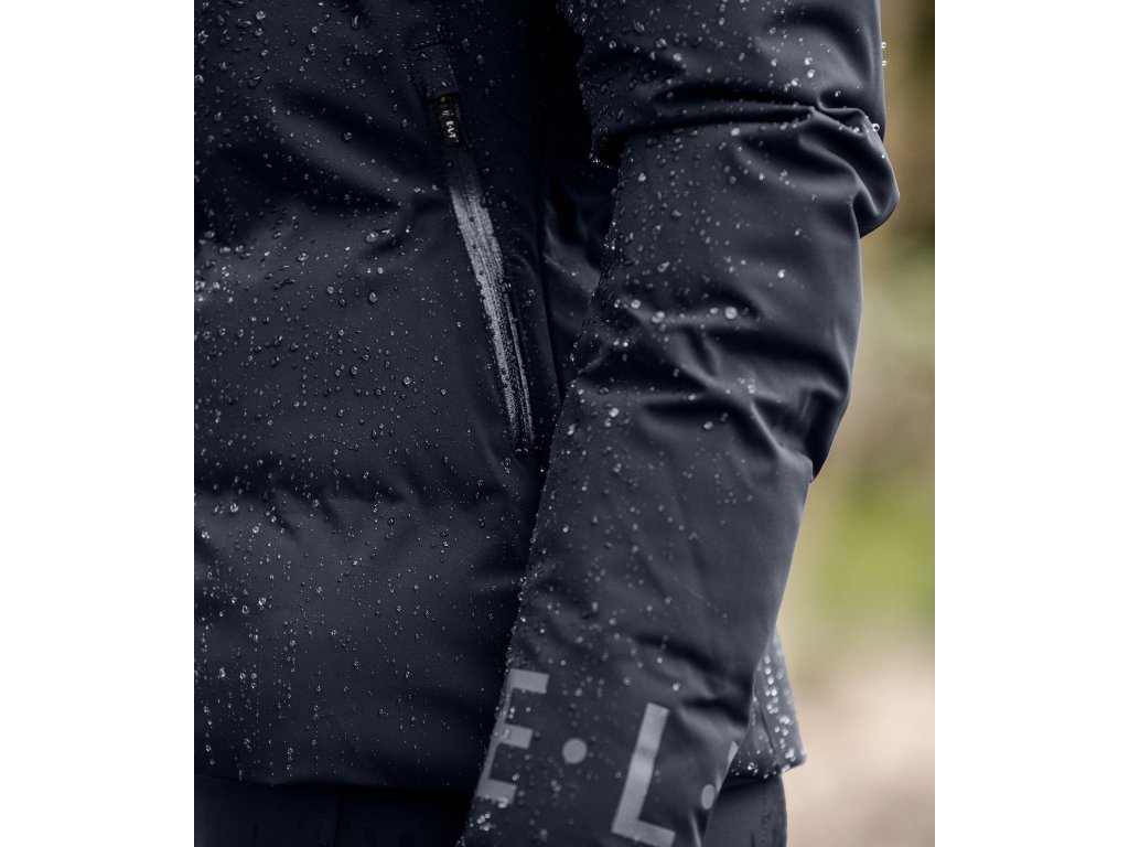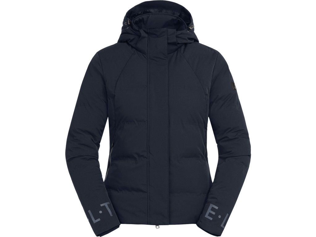 Damska kurtka zimowa wykonana z wysokiej jakości, funkcjonalnego materiału, która zachwyca prostym, ale wyrafinowanym designem. Bardzo korzystny krój, z elastycznym ściągaczem w pasie do regulacji szerokości. Wewnętrzny materiał przypominający pióra zapewnia lekkość i swobodę ruchów. Kurtka jest wodoodporna i wiatroodporna (słup wody: 5 000 mm) o oddychalności 3 000 g/m²/24h i ma klejone szwy.Wyposażona w odpinany i regulowany kaptur, który w razie potrzeby można przymocować z tyłu za pomocą zatrzasku. Kieszenie boczne z zamkami błyskawicznymi są bardzo praktycznym elementem.Kieszenie te są wyposażone w wysokiej jakości wodoodporny zamek błyskawiczny, co z pewnością doceni wielu jeźdźców. Wysokiej jakości dwukierunkowy zamek błyskawiczny z przodu z metalowym suwakiem, logo ELT i osłoną podbródka. Rękawy są wykończone prążkowanymi mankietami. Kurtka jest również wyposażona w odblaskowe paski na plecach i napisy ELT na rękawach.