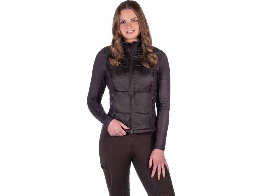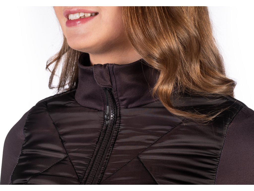 Stylowa kurtka o dopasowanym kroju i nowoczesnym pikowaniu z miękkim bawełnianym wypełnieniem.Dzięki oddychającemu materiałowi jest wygodna do noszenia przez cały dzień. Elastyczne wstawki boczne zapewniają idealne dopasowanie do sylwetki i swobodę ruchów. Kurtka idealnie nadaje się zarówno do stajni, jak i do noszenia na co dzień w mieście. Praktyczne detale obejmują wyższy kołnierz, dwie zewnętrzne kieszenie zapinane na zamek i dwukierunkowe zapięcie na zamek błyskawiczny. Można prać w pralce w temperaturze 30 °C.