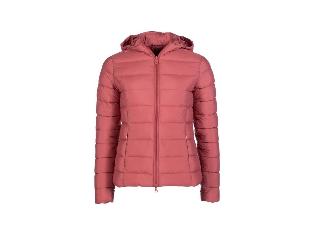 Stylowa kurtka pikowana wykonana z nylonu i poliestru. Kurtka jest ocieplana, odpowiednia na chłodniejszą pogodę. Idealna do jazdy konnej, ale także do wszelkich aktywności w czasie wolnym. Wyposażona w zapięcie na dwukierunkowy zamek błyskawiczny. Wyposażona w wyższy kołnierz i dwie przednie kieszenie zapinane na zamek. Kaptur nie może być zdjęty. Ozdobiona subtelną naszywką z logo na rękawie. Można ją prać w pralce w temperaturze 30 °C i suszyć w suszarce bębnowej. Dostępna w wielu kolorach oraz w rozmiarach dziecięcych i damskich.