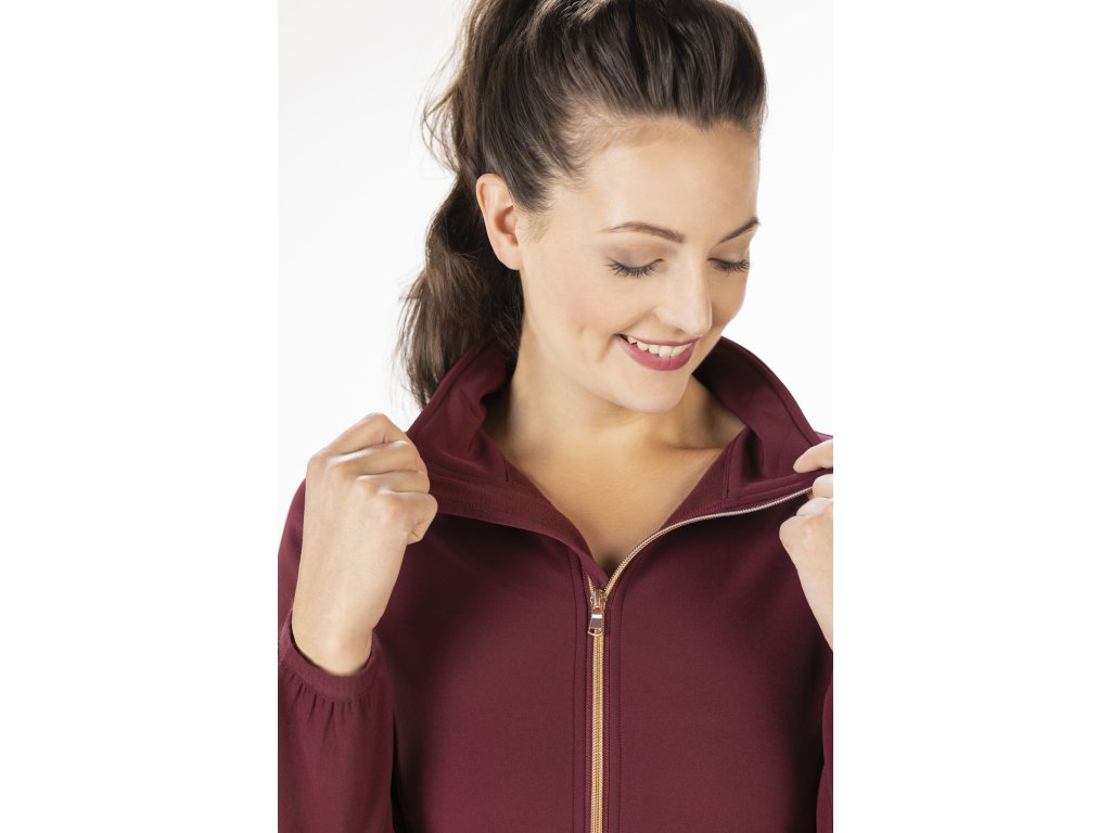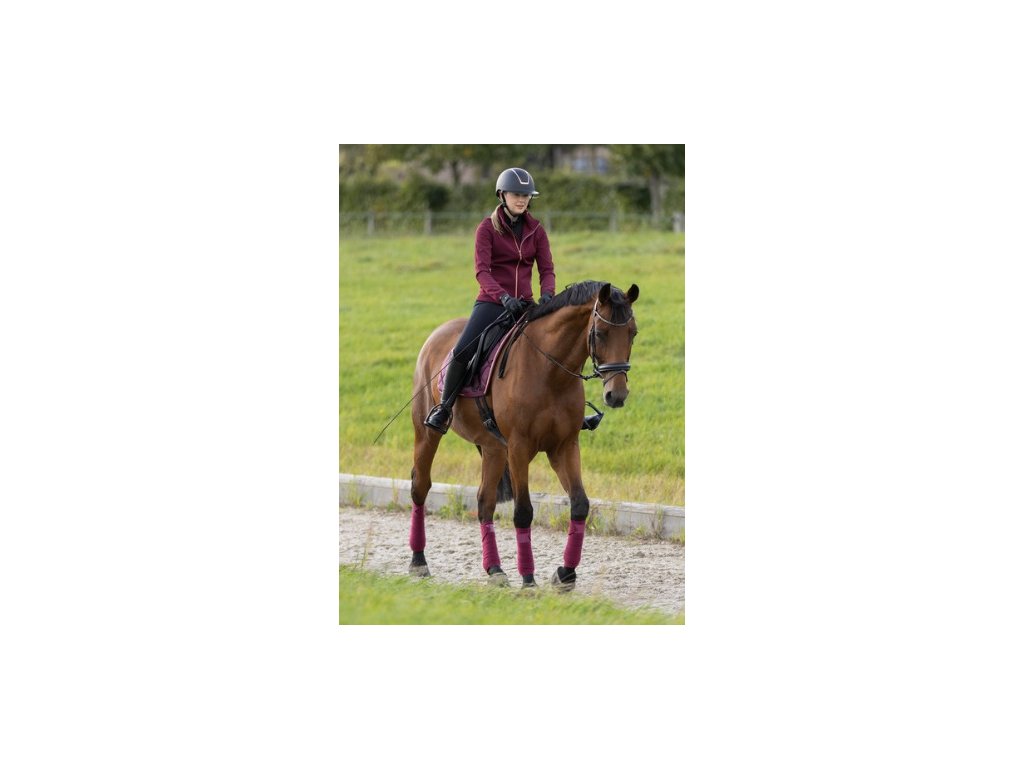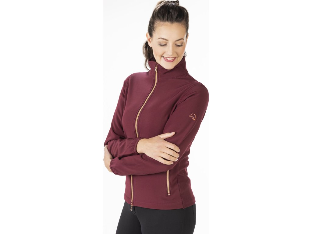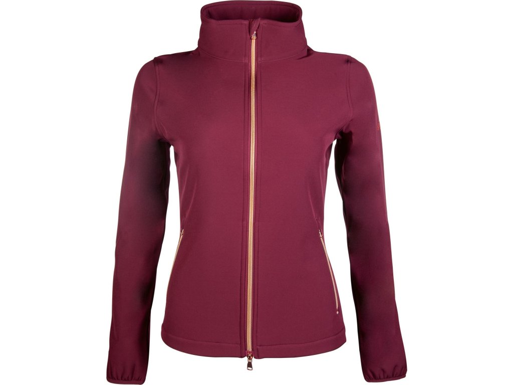 Wodoodporna kurtka softshell z wysokim kołnierzem i dopasowanym krojem firmy HKM. Kurtka wykonana jest z wysoce ocieplającego i wiatroodpornego materiału, który jest również łatwy w pielęgnacji i odporny na zabrudzenia. Dwustronny zamek błyskawiczny z osłoną podbródka umożliwia najlepsze dopasowanie do sylwetki jeźdźca podczas jazdy. Kontrastowe zamki błyskawiczne w kolorze różowego złota pięknie urozmaicają kurtkę i nadają jej bardziej elegancki wygląd. Kurtka jest dodatkowo ozdobiona małym logo marki na lewym rękawie. Ostatni rząd ma dwie przednie kieszenie zapinane na zamek i elastyczne końce rękawów. Można prać w pralce w temperaturze 30°C. Dostępne w wielu kolorach.