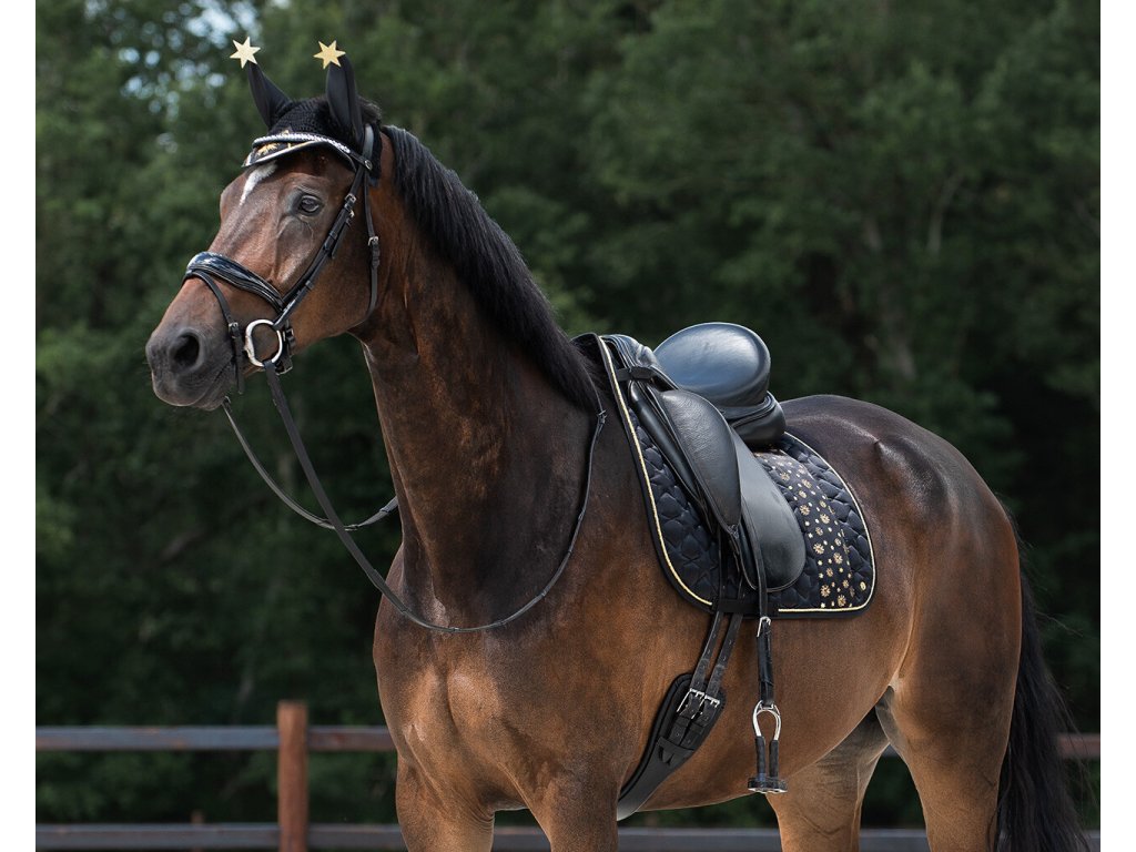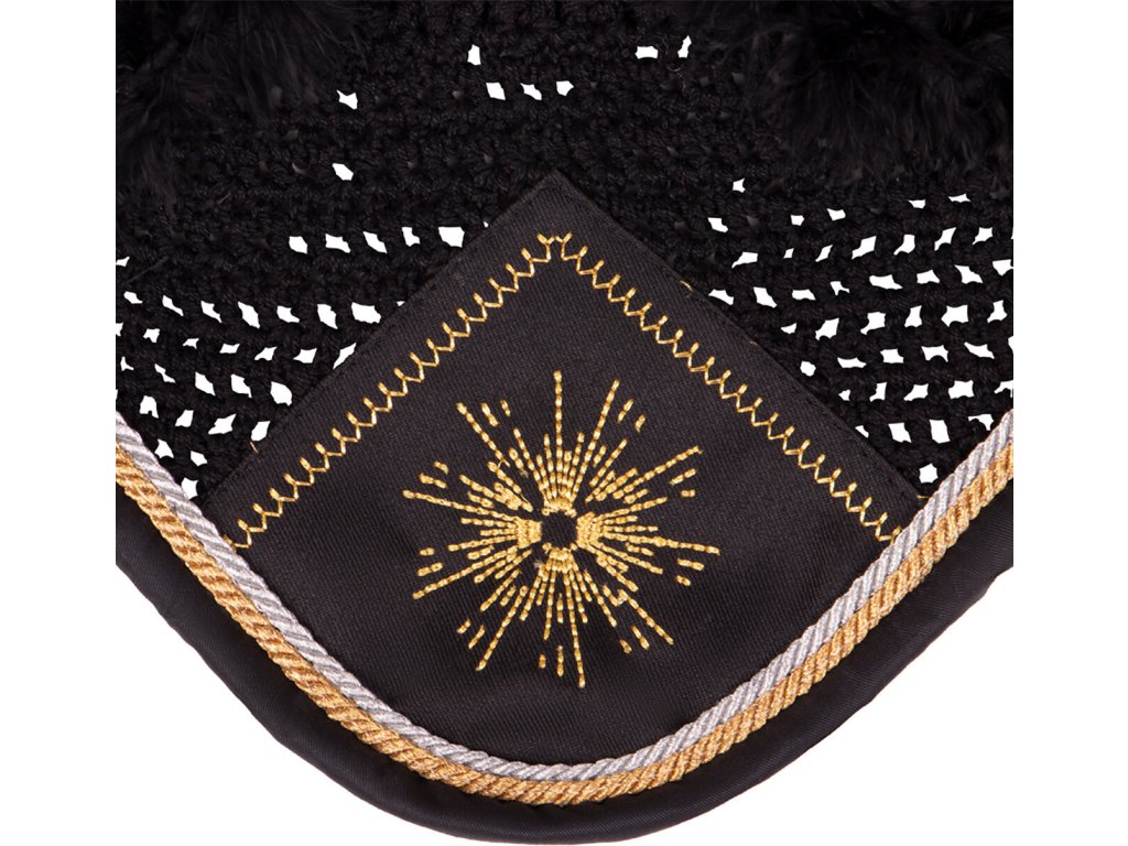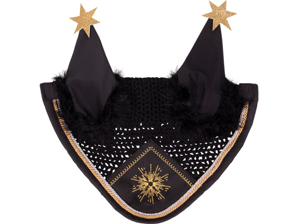 Piękne nauszniki, które rozjaśnią Twoją sylwestrową przejażdżkę. Nauszniki są wykonane na szydełku i posiadają elastyczny materiał w okolicy uszu. Ozdobione złotą krawędzią, gwiazdą i czarnymi piórami. Nauszniki idealnie pasują do innych produktów z kolekcji Celebrate.