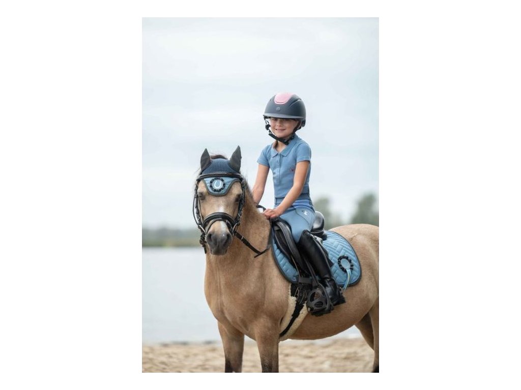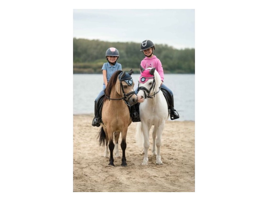 Wysokiej jakości nauszniki, które służą jako ochrona konia przed irytującymi owadami. Posiadają elastyczne uszy, ozdobny pas i uroczą aplikację w stylu kokardki 3D. Odpowiednie dla kuców szetlandzkich.