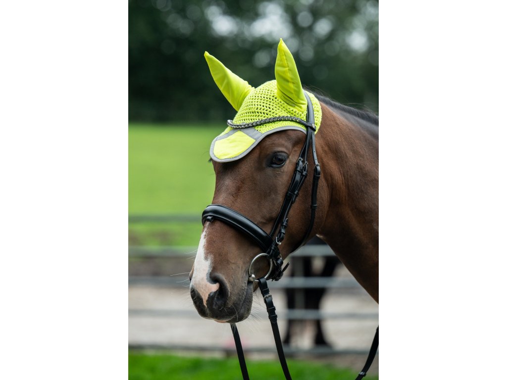 Neonowożółte nauszniki z odblaskowymi paskami, idealnie pasują do całej kolekcji "Reflective". Zapewnij bezpieczeństwo sobie i swojemu koniowi nawet podczas złej pogody lub zmierzchu.