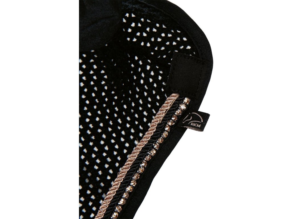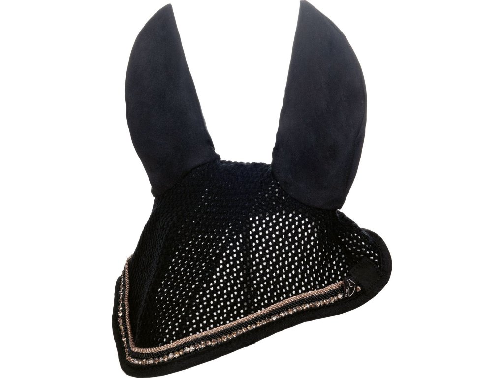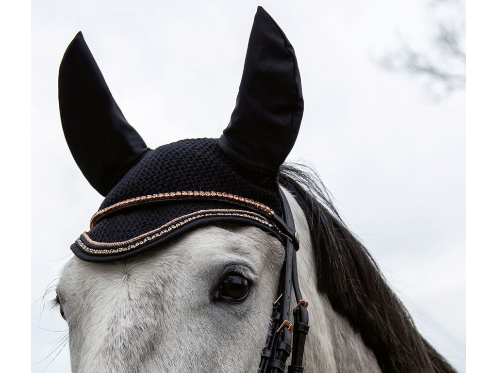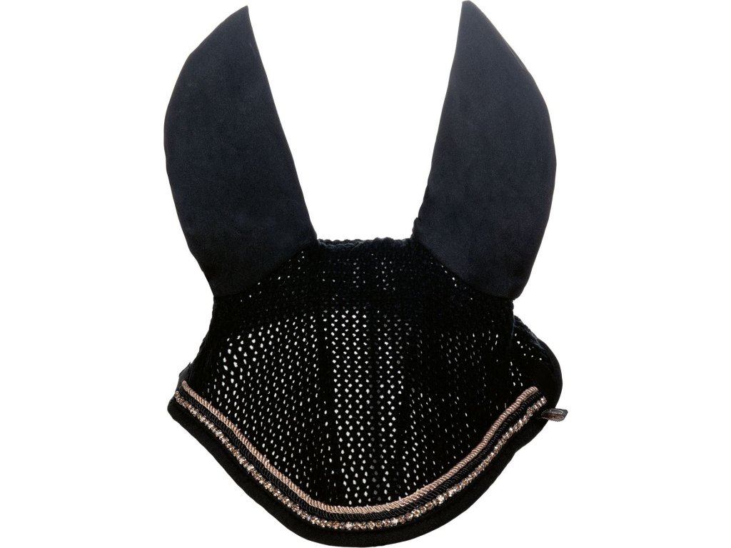 Wysokiej jakości nauszniki chroniące uszy konia przed muchami. Nauszniki są wykonane na drutach i z przyjemnego materiału, co zapewnia większy komfort. Dostępny w kilku rozmiarach. Zostały zaprojektowane w pięknym, eleganckim stylu. Idealnie pasują do czapraka Rosegold Glamour Style oraz kolekcji Rosegold Glamour HKM.