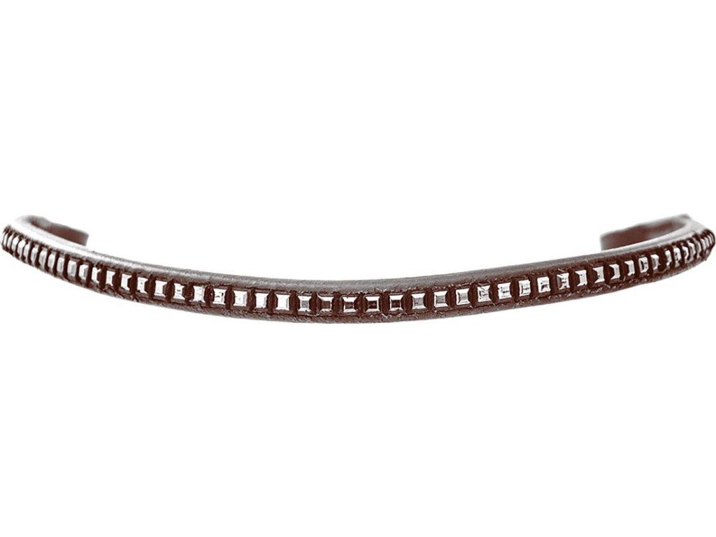 Elegancki naczółek wykonany z wysokiej jakości miękkiej skóry. Ozdobiony srebrnymi cyrkoniami. Pasuje do wszystkich rodzajów angielskich ogłowi. Dostępne również w kolorze czarnym. W rozmiarach Cob i Full.