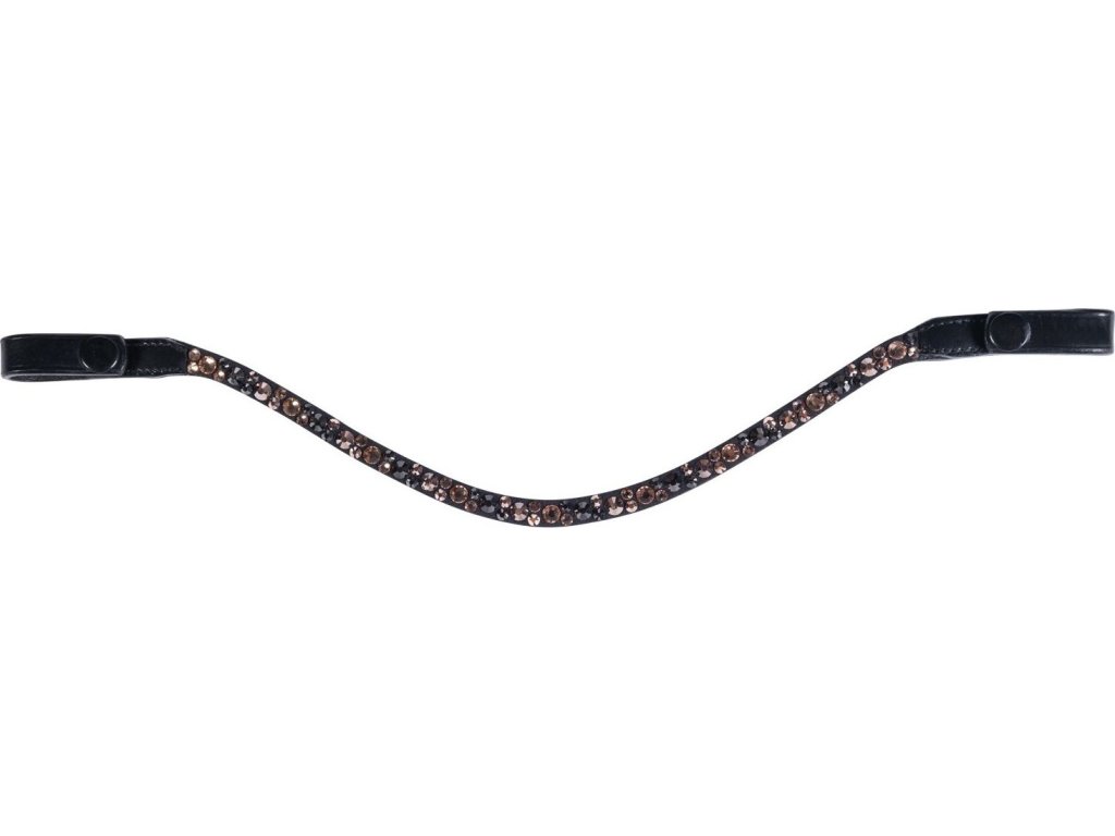 Naczółek wykonany z wysokiej jakości skóry. Można go szybko i wygodnie zapinać i rozpinać za pomocą zatrzasków. Ozdobiony delikatnymi dżetami w kolorze czarnym i różowego złota. Dostępne w rozmiarach Pony, Cob i Full. Idealnie pasują do kolekcji HKMs Rosegold Glamour.