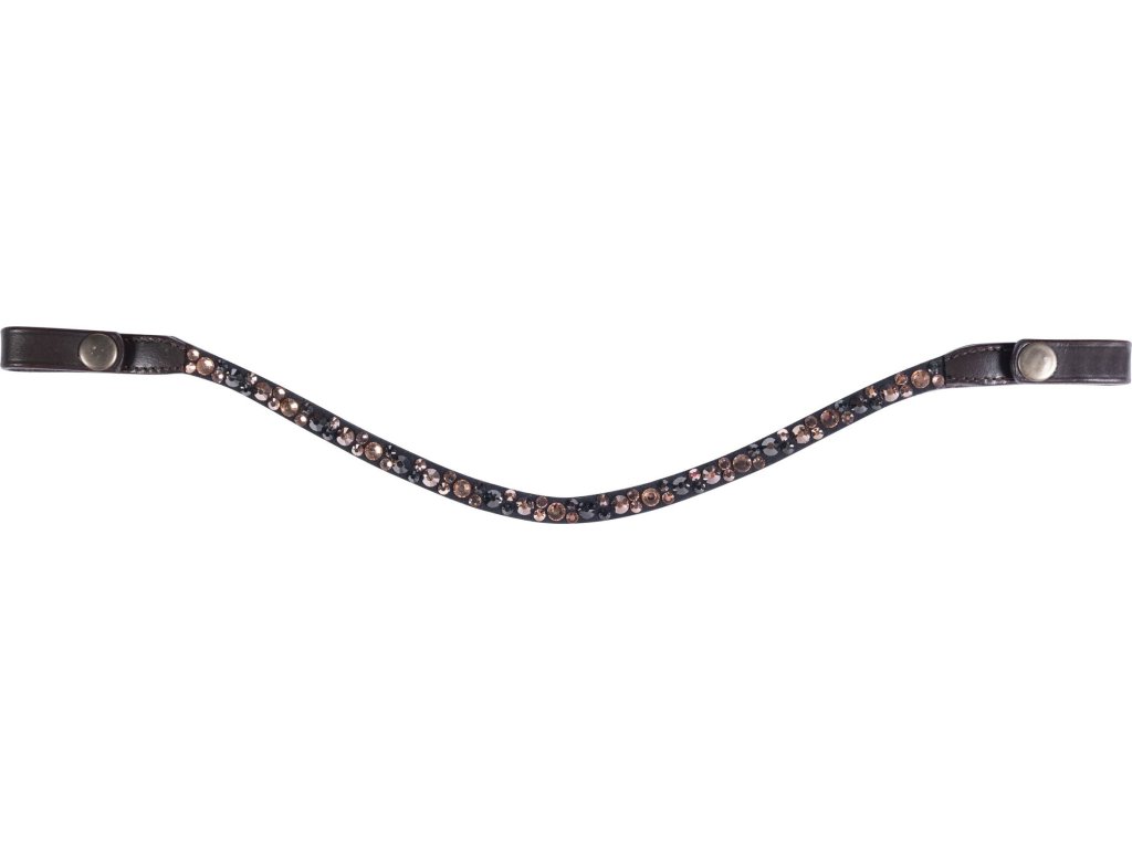 Naczółek wykonany z wysokiej jakości skóry. Można go szybko i wygodnie zapinać i rozpinać za pomocą zatrzasków. Ozdobiony delikatnymi dżetami w kolorze czarnym i różowego złota. Dostępne w rozmiarach Pony, Cob i Full. Idealnie pasują do kolekcji HKMs Rosegold Glamour.