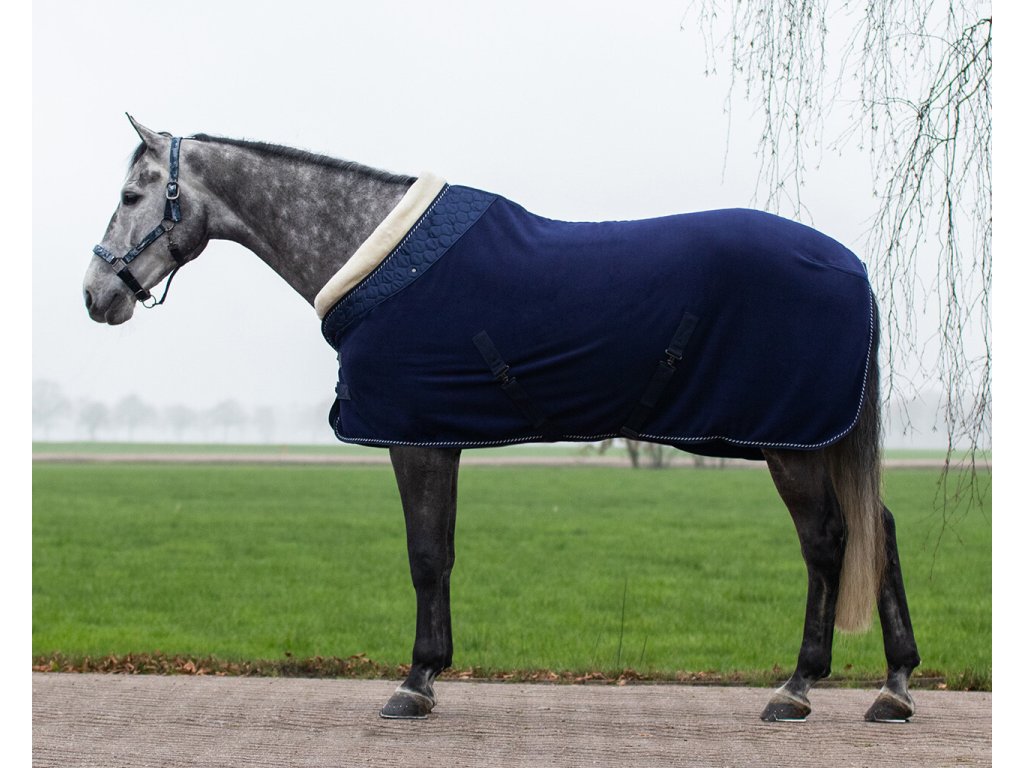 Wysokiej jakości derka chłodząca wykonana z miękkiego polaru dla maksymalnego komfortu. Derka jest wyposażona w podwójne zapięcie na klatce piersiowej, odpinane zapięcie krzyżowe pod brzuchem i sznurek ogonowy. Wyposażona jest w kołnierz wykonany z imitacji wełny, który zapobiega otarciom w okolicy kłębu. Jest ozdobiona dekoracyjną lamówką i satyną, co nadaje derce elegancki wygląd. Wszystkie okucia wykonane są z wysokiej jakości czarnej stali nierdzewnej. Derka idealnie pasuje do innych produktów z kolekcji Brilliance i jest dostępna w kilku wersjach kolorystycznych.