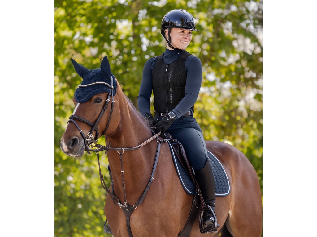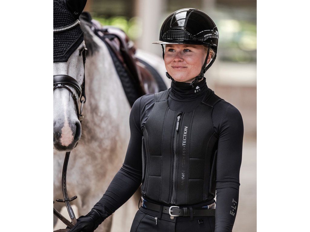 Ochraniacz kręgosłupa P24 Pro SWING został opracowany zgodnie z obowiązującą normą bezpieczeństwa EN 1621-2:2014, poziom 2 i oferuje niezrównaną ochronę podczas jazdy. Panel ochronny SWING-Flex, który znajduje się z tyłu i składa się z pięciu warstw o grubości zaledwie 18 mm. Ochraniacz jest zatem ultracienki, bardzo lekki i oddychający. Oferuje maksymalną swobodę ruchów i jest jednocześnie bezpieczny. Jest również wyposażony w panele ochronne na klatce piersiowej i obszarze żeber, aby zwiększyć ochronę. Ulepszone ergonomiczne dopasowanie i możliwość regulacji rozmiaru za pomocą zapięć na rzepy po bokach zapewniają optymalne dopasowanie. Przednie zapięcie na zamek błyskawiczny z suwakiem bezpieczeństwa SWING umożliwia łatwe zapinanie i rozpinanie, zarówno w sytuacjach awaryjnych lub podczas noszenia rękawic. Kolejną cechą jest odpinany ochraniacz pleców dla łatwego czyszczenia i konserwacji. Ochraniacz kręgosłupa P24 Pro SWING to idealny wybór dla jeźdźców, którzy potrzebują maksymalnej ochrony i nieograniczonej swobody ruchów - zarówno podczas jazdy w terenie, jak i codziennych treningów. Odkryj swobodę jazdy z ochroną kręgosłupa, która łączy bezpieczeństwo, wszechstronność i komfort.