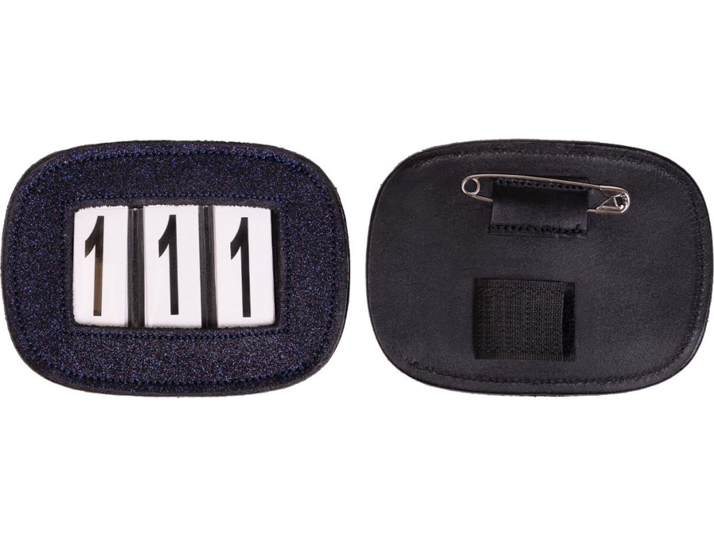 Kwadratowy numer startowy wykonany z wysokiej jakości skóry. Dostarczany w komplecie z wymiennymi numerami. Można go łatwo przymocować za pomocą rzepu i agrafki do czapraka lub ogłowia. Jest ozdobiony drobnym brokatem. Dostarczane po 1 szt. Dostępny w wielu opcjach kolorystycznych.