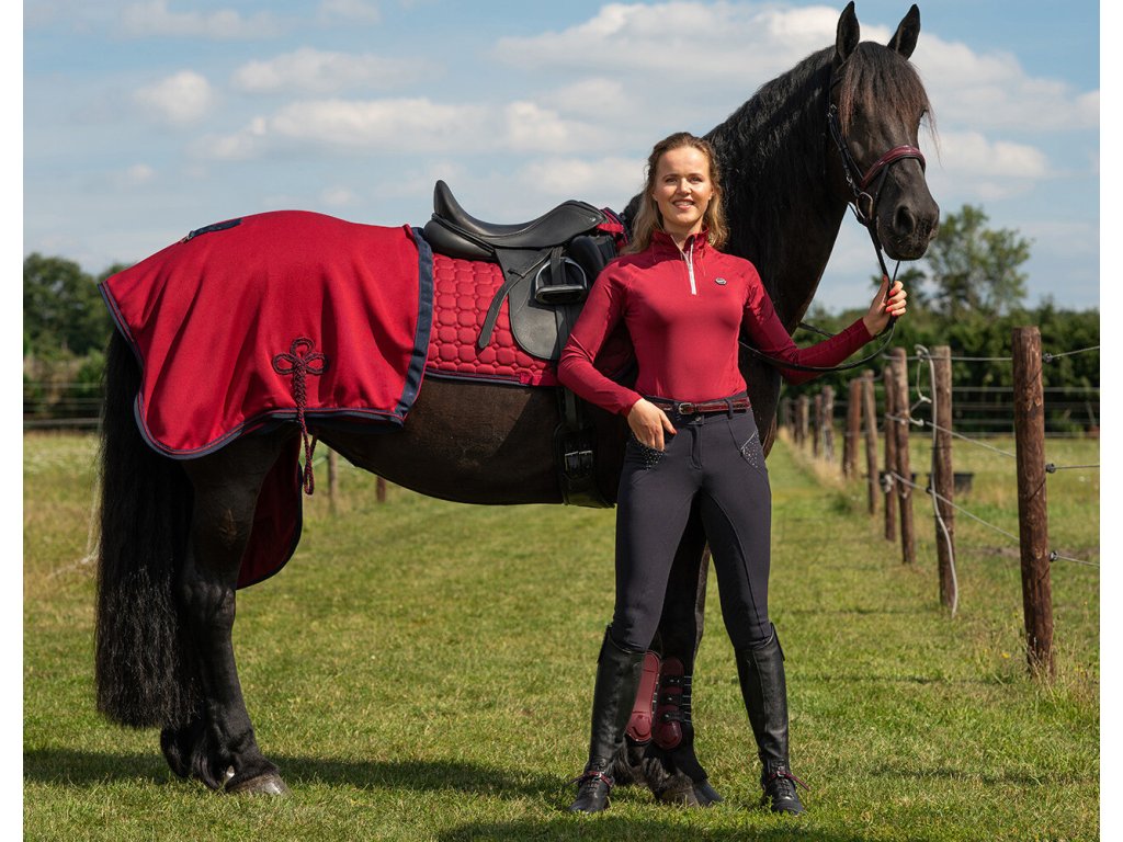Elegancki czaprak QHP z podwójnym obszyciem i anatomicznie ukształtowanym tyłem. Czaprak jest wyposażony w szlufki na popręg i krótkie szlufki na siodło zapinane na rzepy, które zapewniają, że czaprak pozostaje na swoim miejscu. Haft QHP z tyłu dopełnia jego elegancki wygląd. Czaprak ma wewnątrz chłonną tkaninę, która doskonale wchłania pot. Chcesz wiedzieć, jakiego rozmiaru potrzebuje twój koń? Zobacz tabelę rozmiarów (patrz zdjęcia).