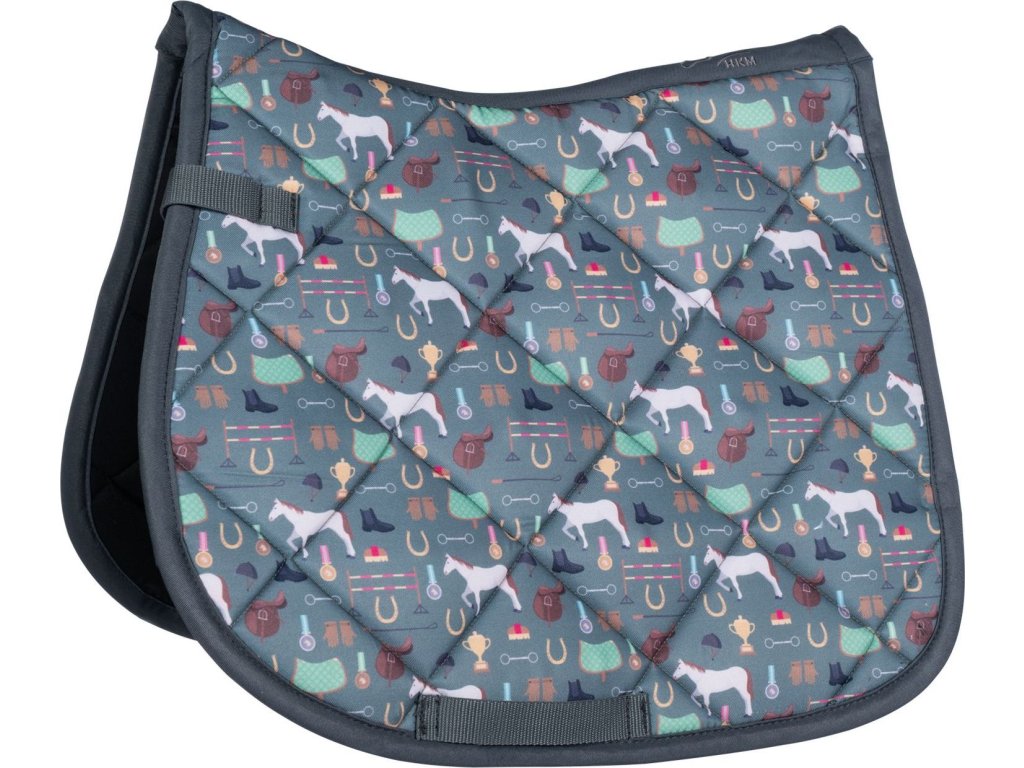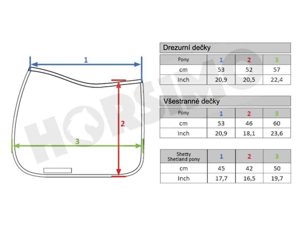 Bardzo wysokiej jakości czaprak o anatomicznym kształcie. Wykonana z oddychającego materiału. Z paskami na rzepy dla łatwego mocowania do siodła. Produkowany w rozmiarach pony i shetty.