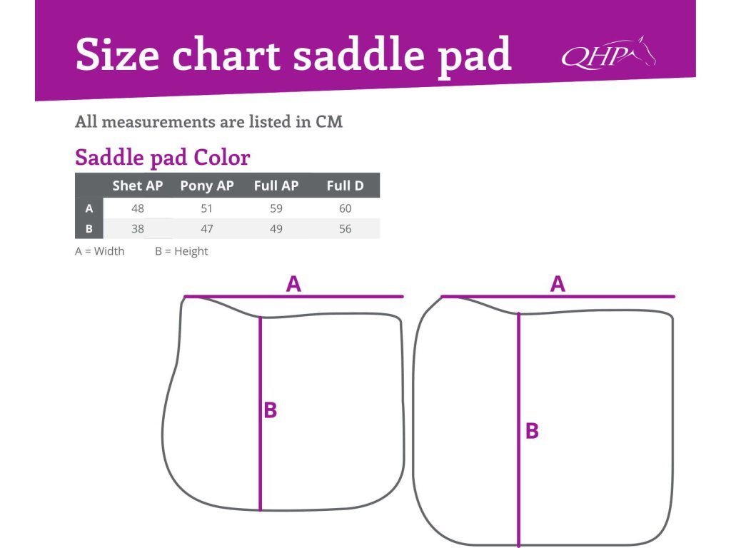 Klasyczny czaprak z anatomicznie ukształtowanym grzbietem, zaprojektowany w pięknych, jaskrawych kolorach, które pasują do kolorowych kolekcji firmy QHP. Wyposażony w szlufki na popręg i paski mocujące na rzepy. Czaprak nadaje się do haftowania logo. Wykonany z wysokiej jakości materiałów. Chcesz wiedzieć, jakiego rozmiaru potrzebuje twój koń? Zobacz tabelę rozmiarów (patrz zdjęcie).