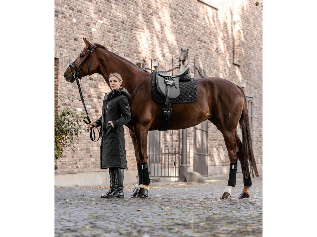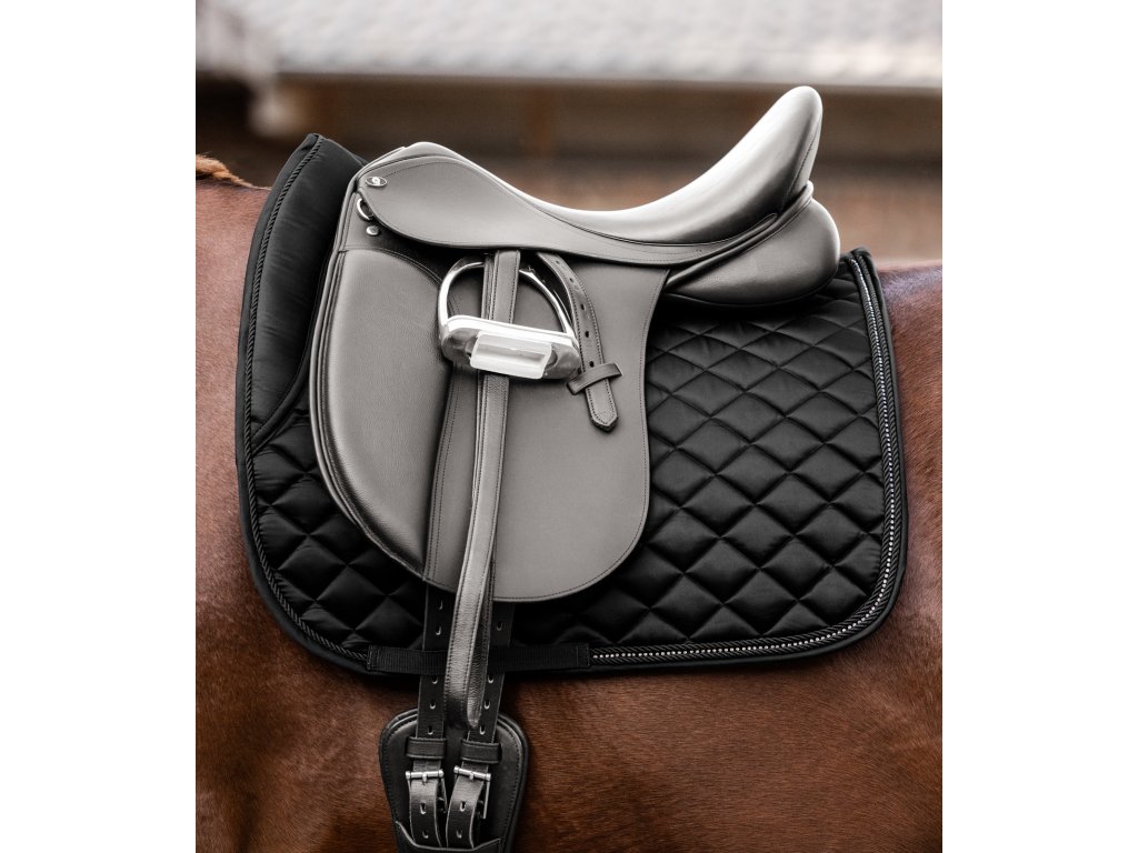 Wysokiej jakości czaprak wykonany z subtelnego, błyszczącego materiału, który nadaje elegancki wygląd. Jest ozdobiony dekoracyjnym sznurkiem wzdłuż krawędzi z błyszczącym detalem z dżetów. Idealnie pasuje do innych produktów z kolekcji Nepal. Dostępny w wielu opcjach kolorystycznych.