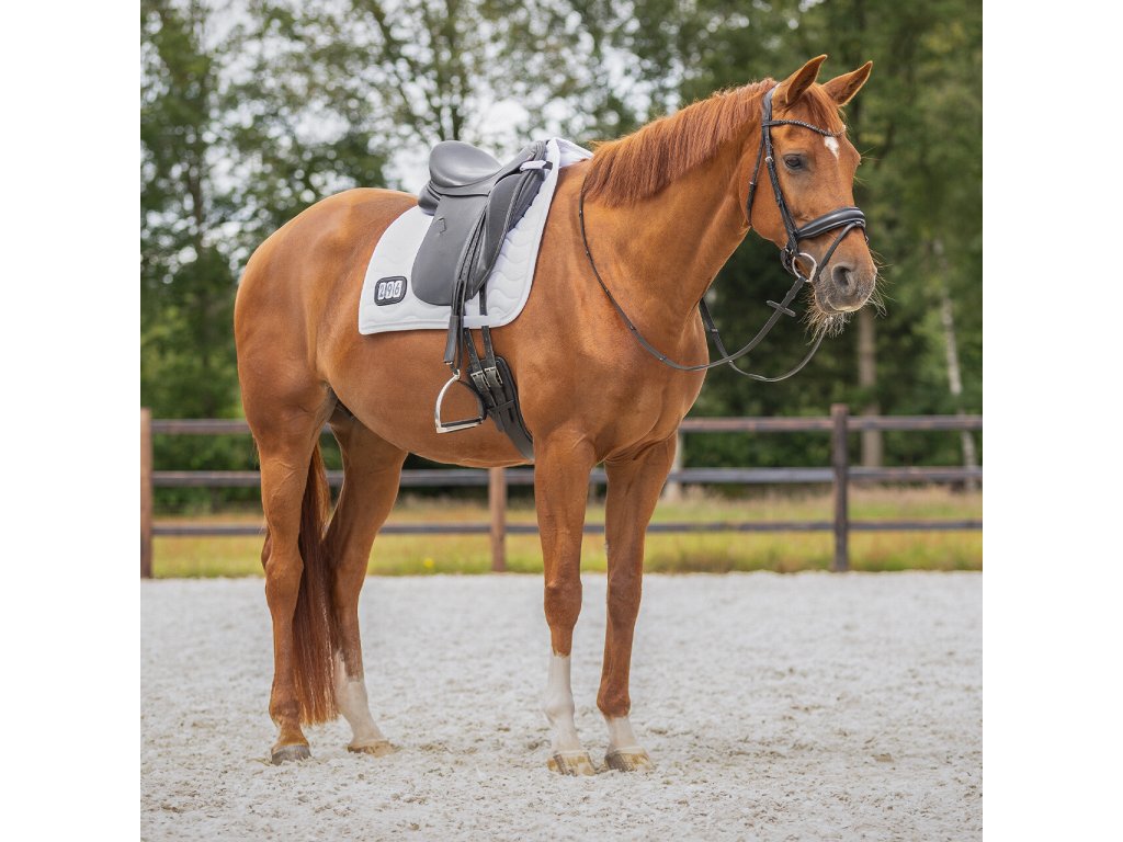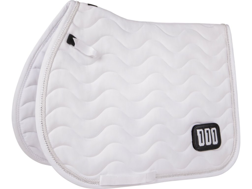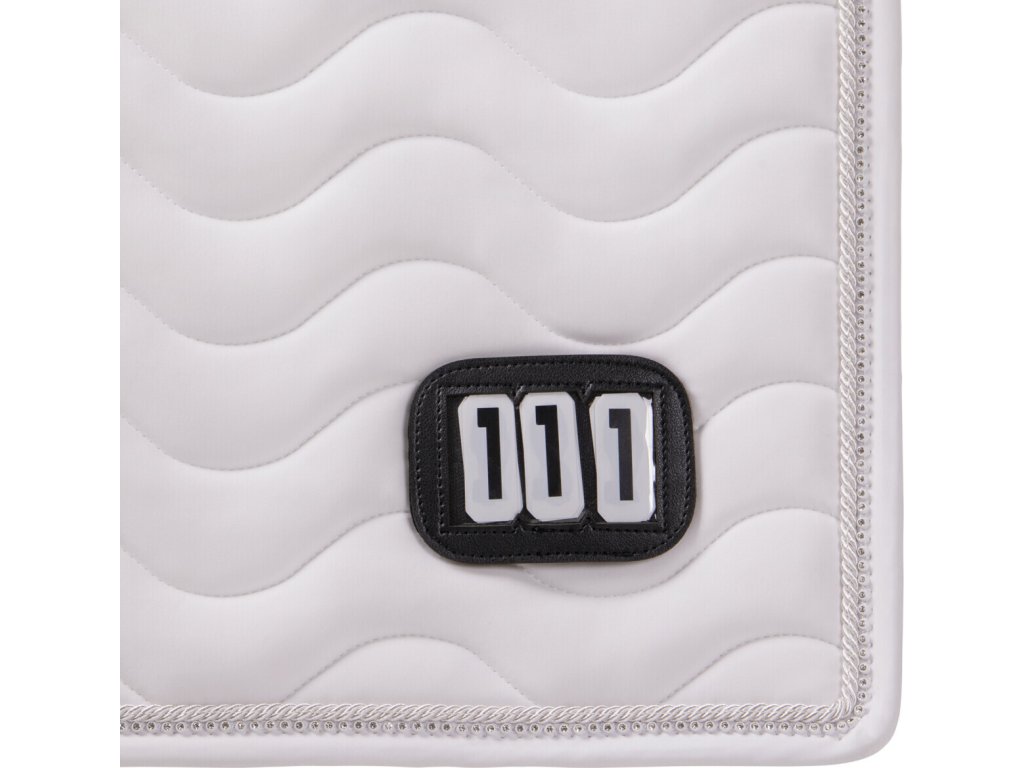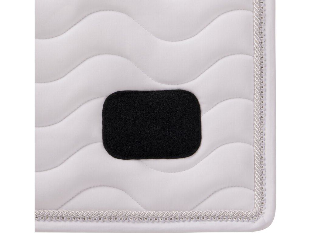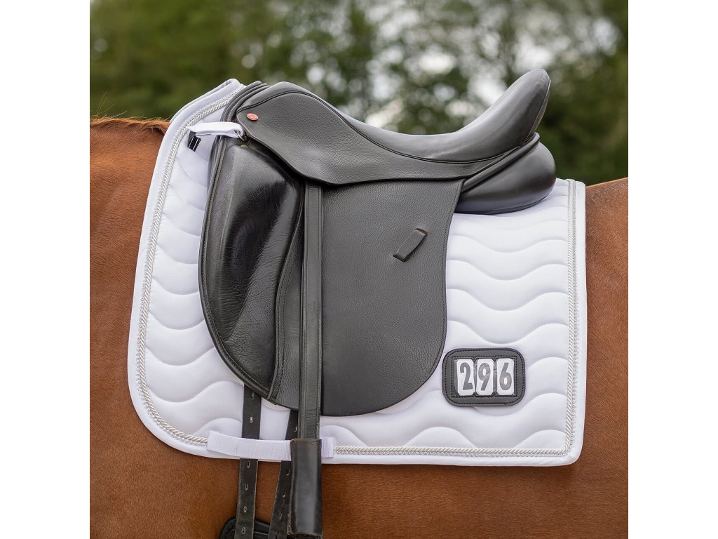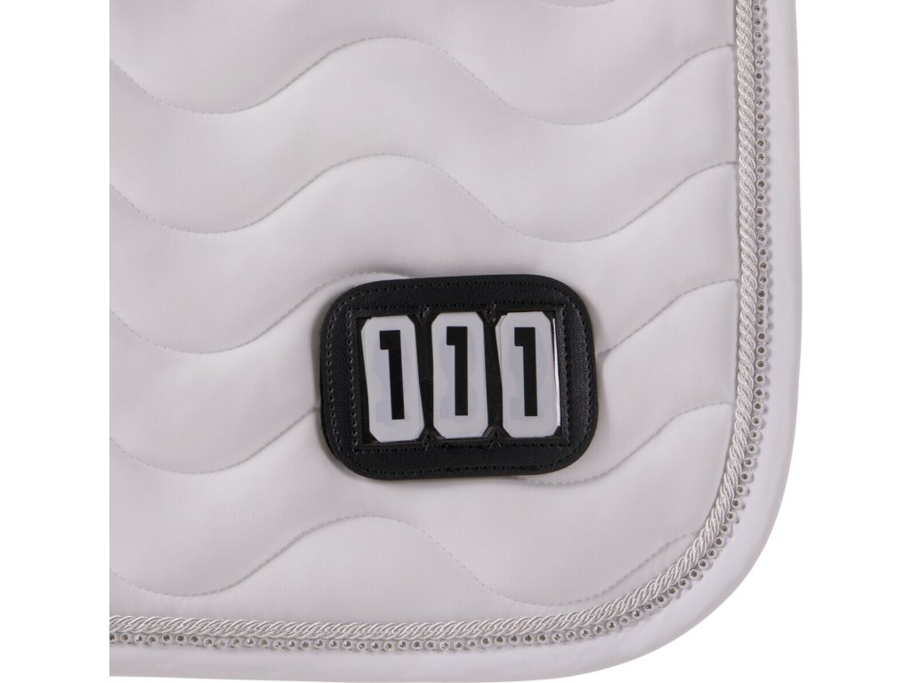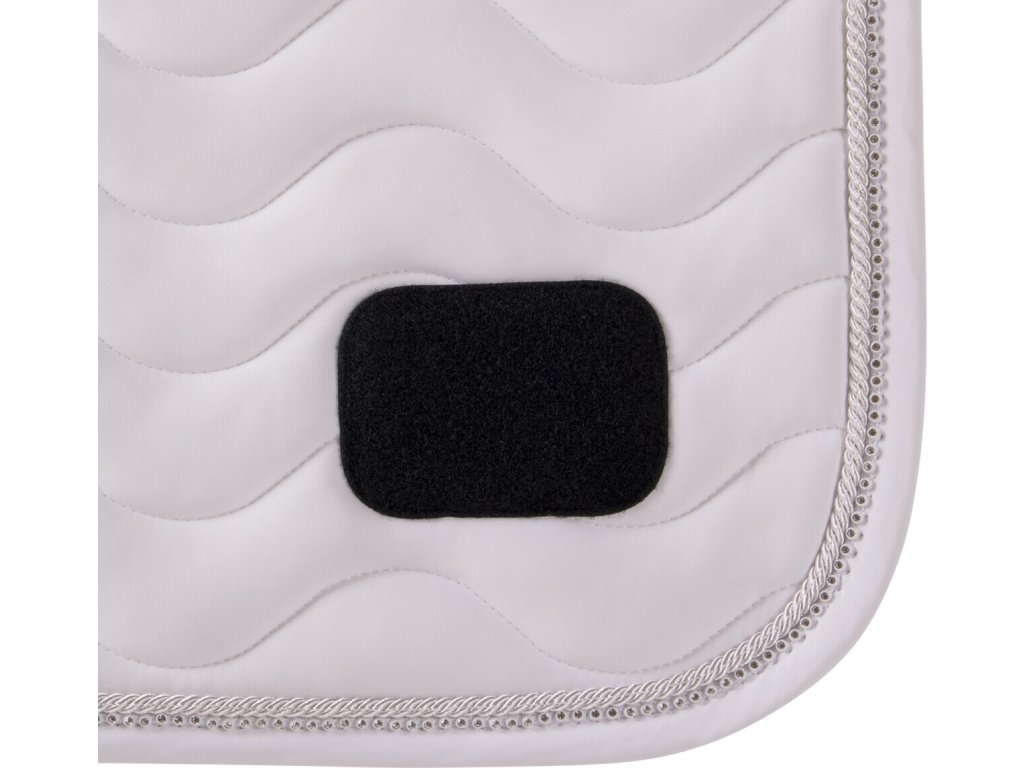 Elegancki czaprak z anatomicznie ukształtowaną częścią grzbietową. Wyposażony jest w numer startowy mocowany na rzep, po jednym z każdej strony. Wyposażony jest również w szlufki na popręg i krótkie paski do siodła z rzepem, które zapewniają bezpieczne utrzymanie czapraka na miejscu. Posiada wewnętrzną siateczkową podszewkę, która doskonale pochłania pot. Ozdobiony podwójną lamówką i cyrkoniami.