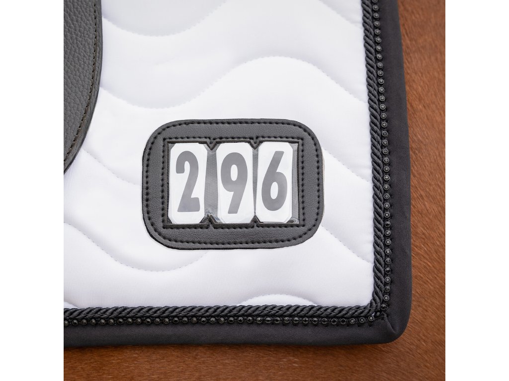 Czaprak z numerem startowym QHP, czarno-biały