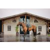 Czaprak Amigo Sport łączy w sobie nowoczesny wygląd z funkcjonalnością. Wykonany z wytrzymałej polibawełny z miękkim wypełnieniem i wewnętrzną tkaniną waflową, która odprowadza wilgoć. Dzięki ergonomicznemu krojowi, elastycznym paskom na rzepy i paskowi na popręg, zapewnia stabilność siodła. Idealny do codziennego użytku i na zawody. Uniwersalny design. Szerokość (wzdłuż grzbietu) 80 cm, długość 60 cm.