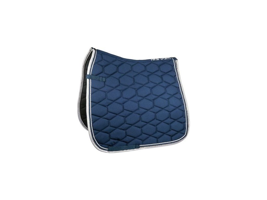 Bardzo wysokiej jakości czaprak, o anatomicznym kształcie dla maksymalnego komfortu. Z paskami na rzepy dla łatwego mocowania do siodła. Zdolność absorpcji potu. Dzięki obszyciu z dżetów ma elegancki wygląd.