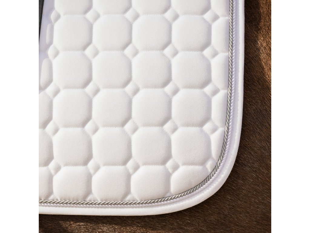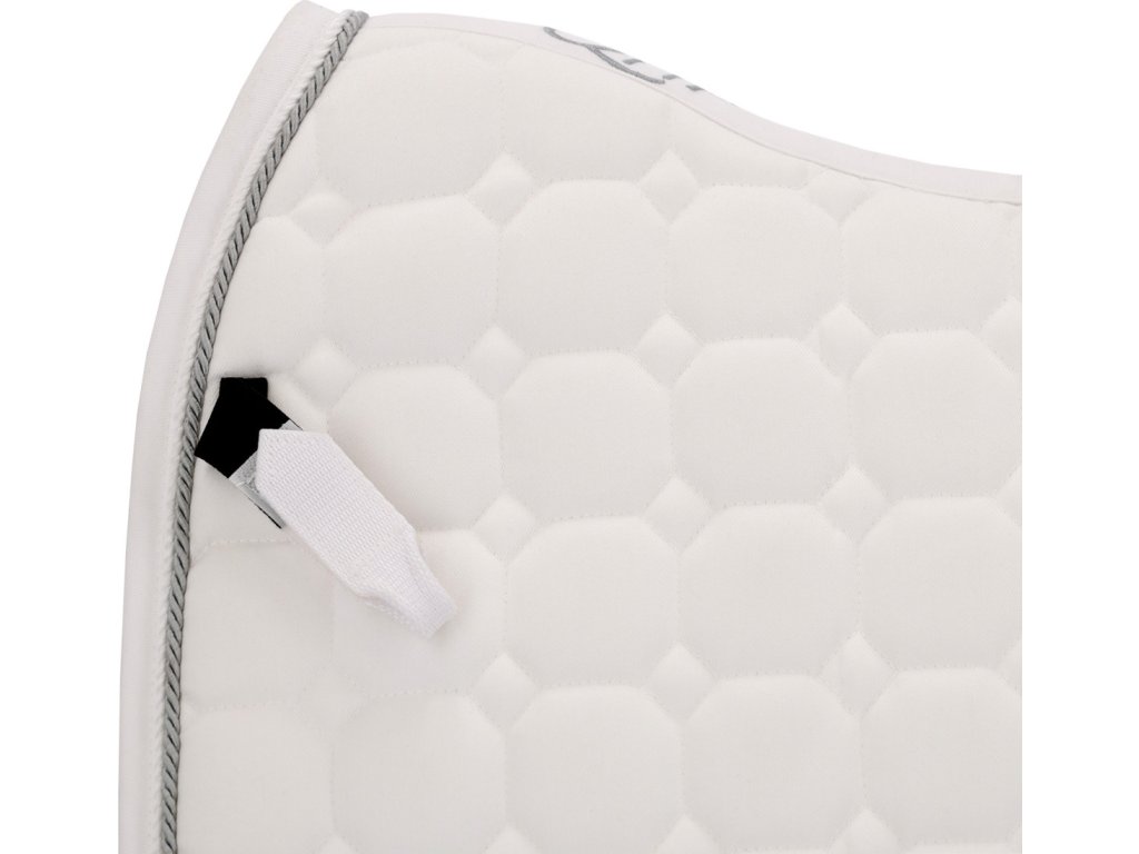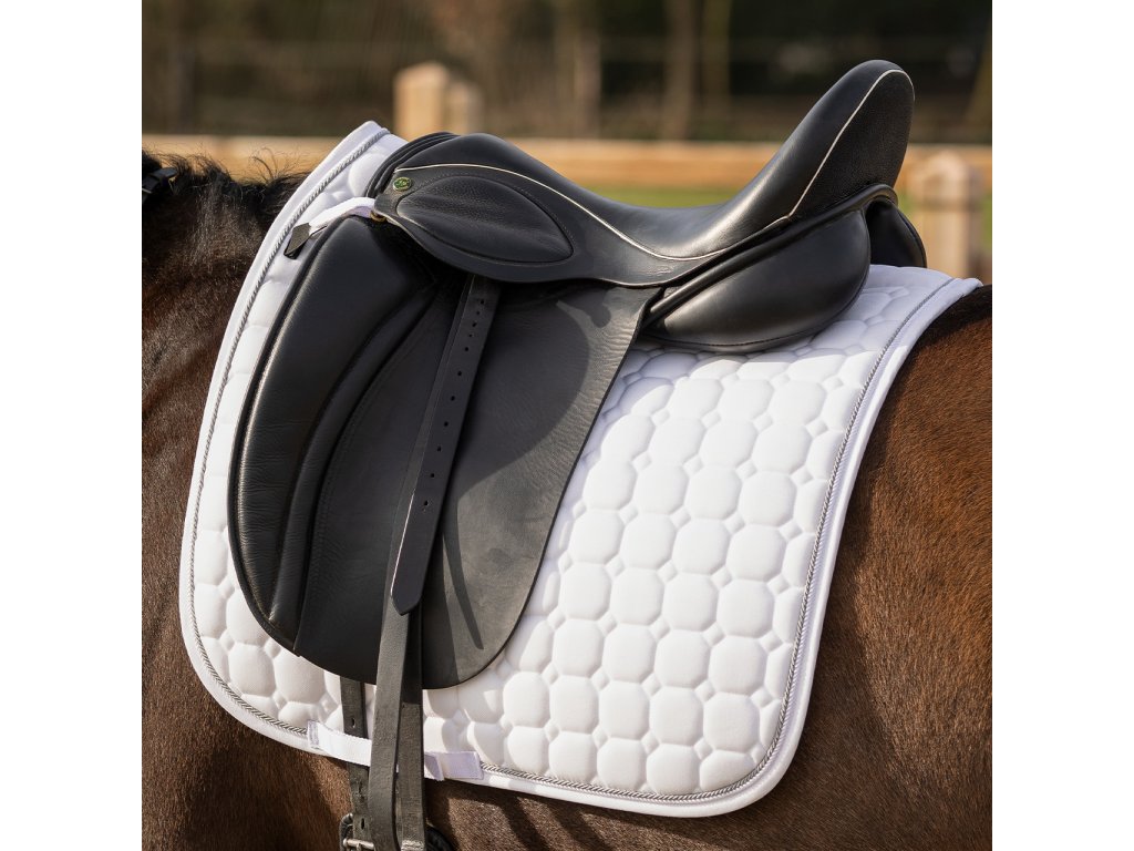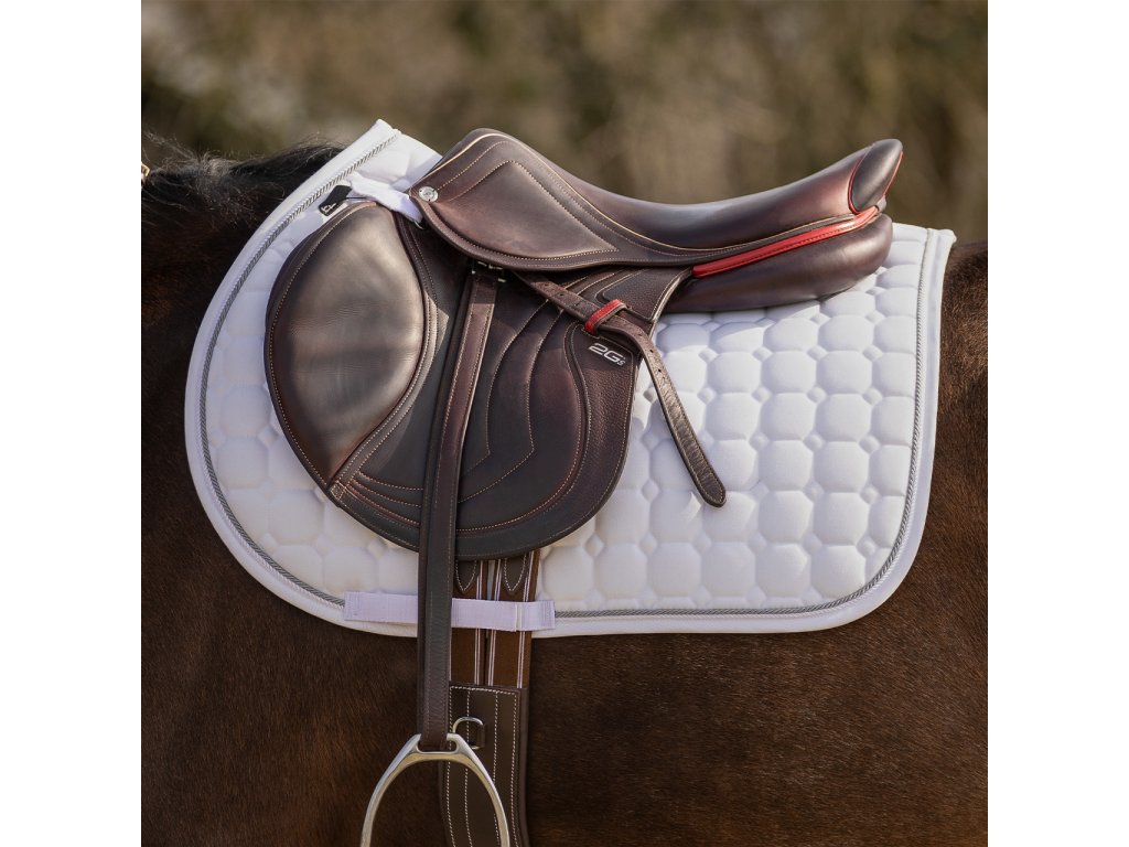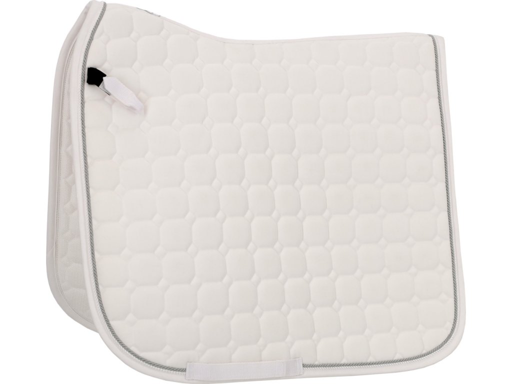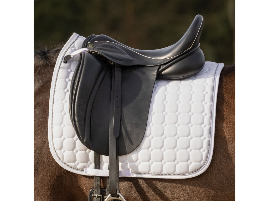 Czaprak Firenze to stylowy element o anatomicznym kształcie, zapewniającym optymalne dopasowanie. Oddychająca podszewka z siateczki zapewnia doskonałą absorpcję potu. Jest ozdobiony lamówką i logo producenta. Dzięki szlufkom na popręg i szlufkom na siodło z rzepami dobrze się trzyma na miejscu.